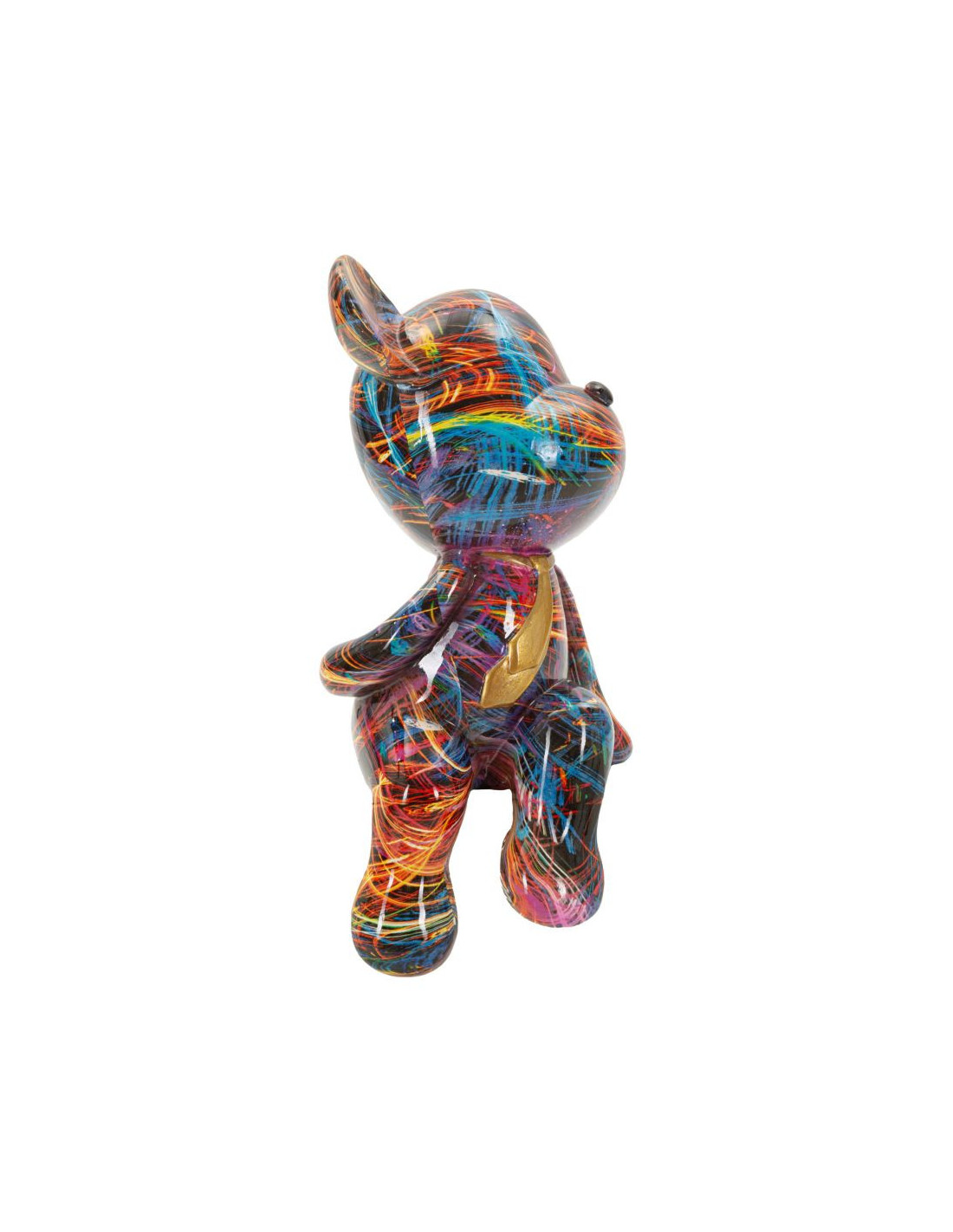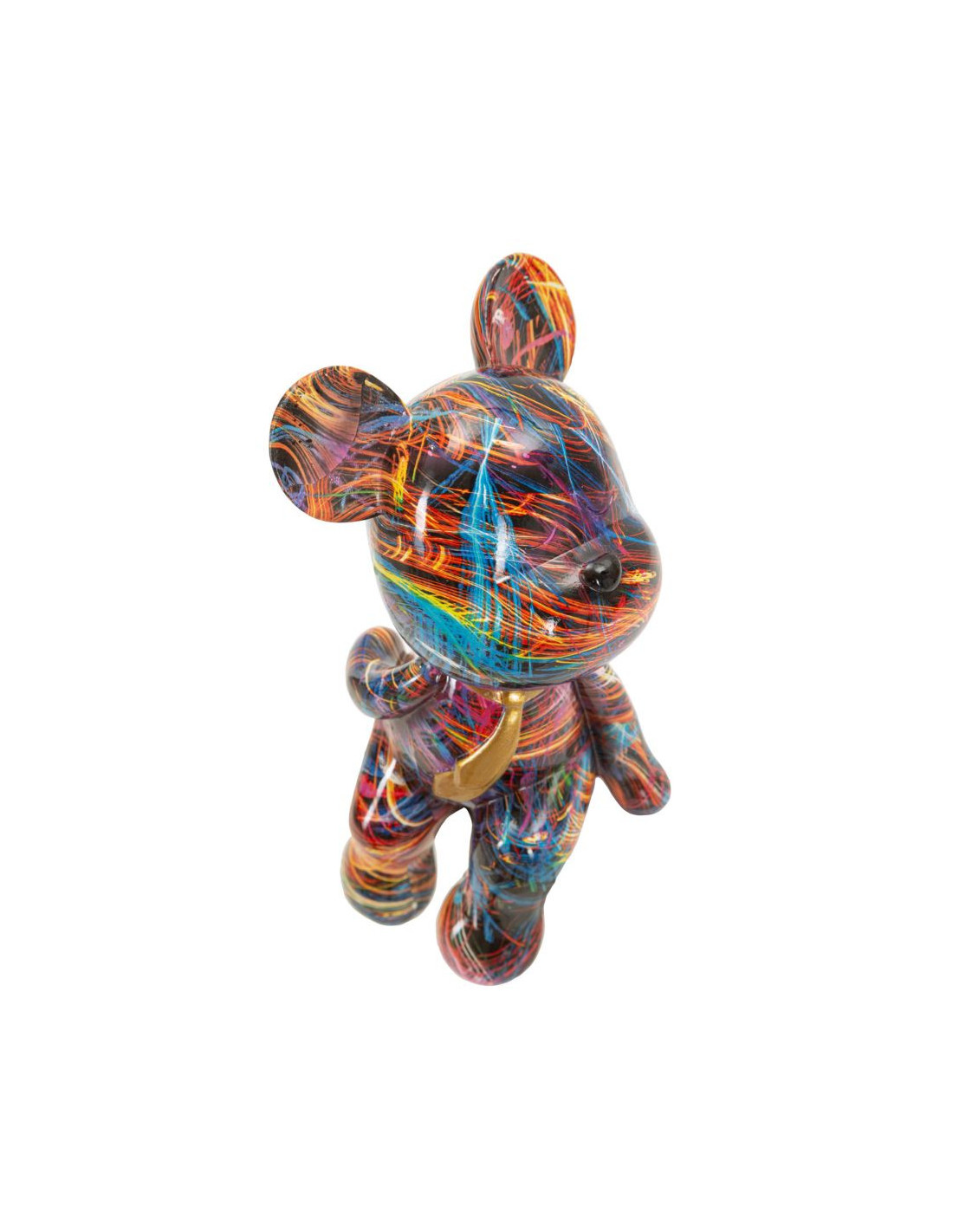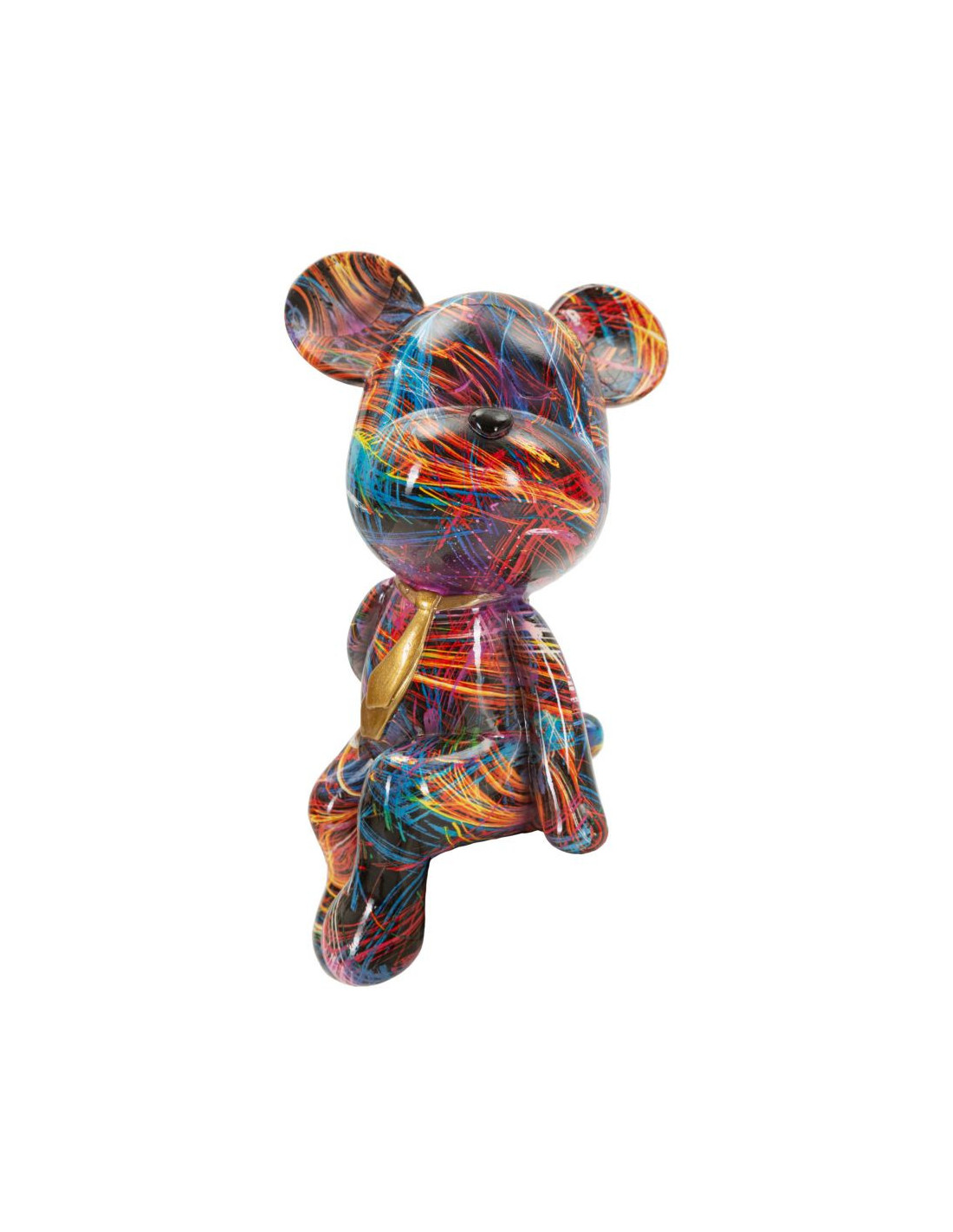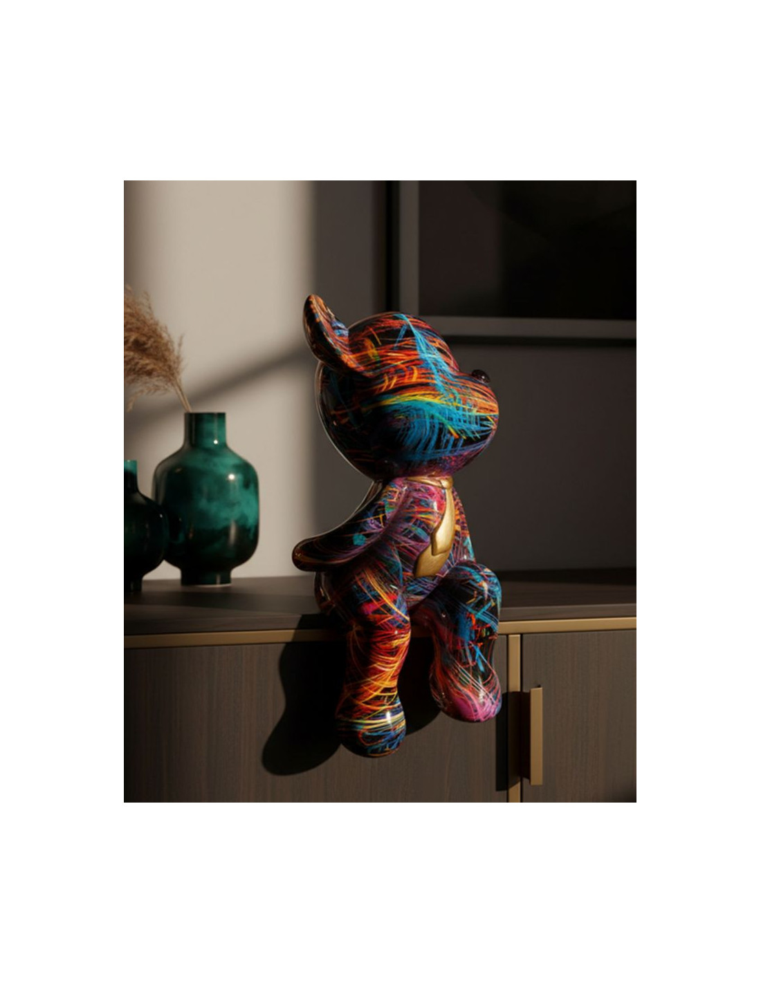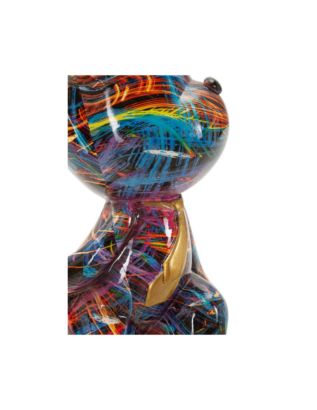 Statuette design Pop Art Ourson Chic Hauteur 23 cm Résine Multicolore Motif lignes Doré Psyco