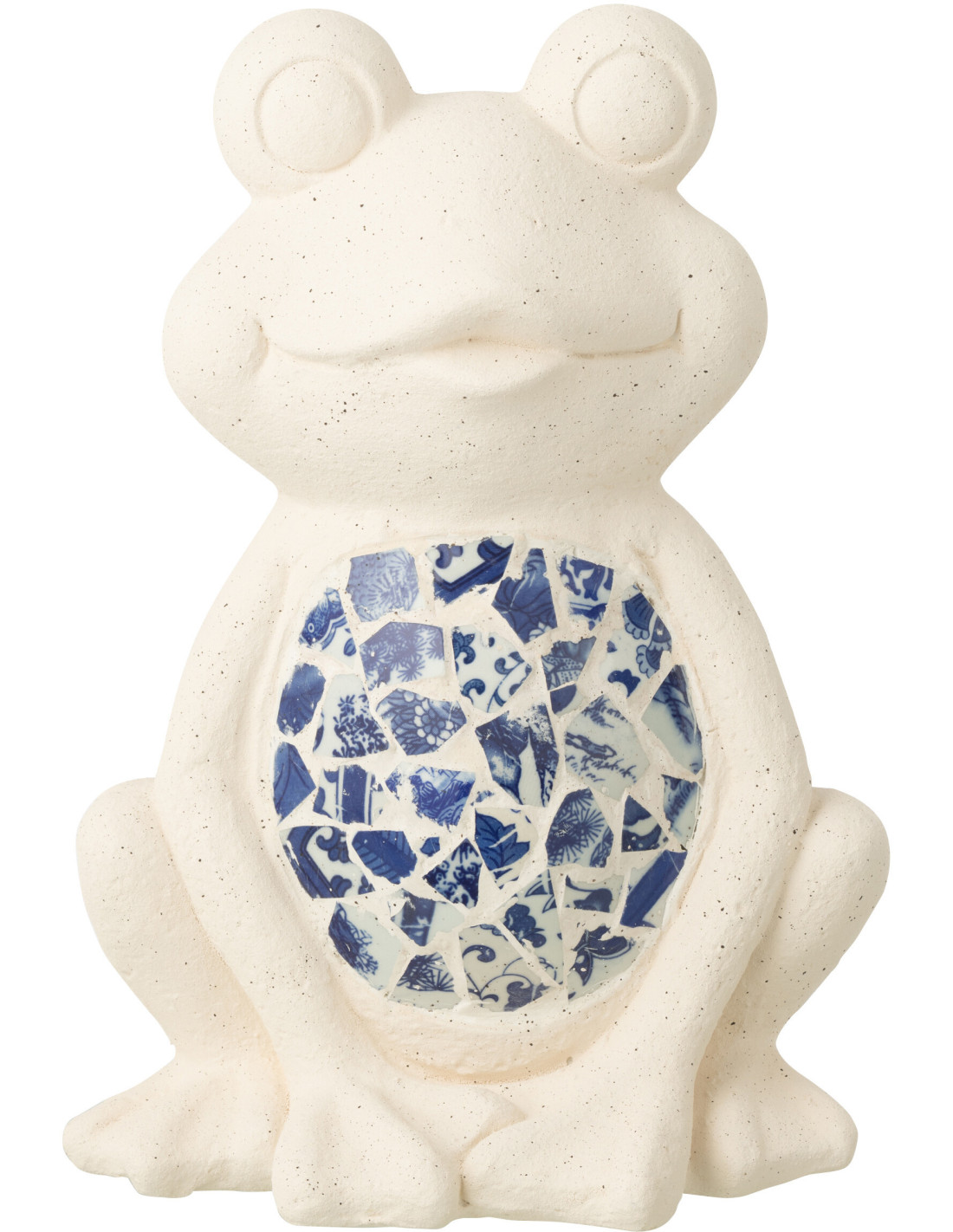 Statuette extérieur Grenouille H 39 cm Oxyde de magnésium Beige Mosaïque Bleu Doralin
