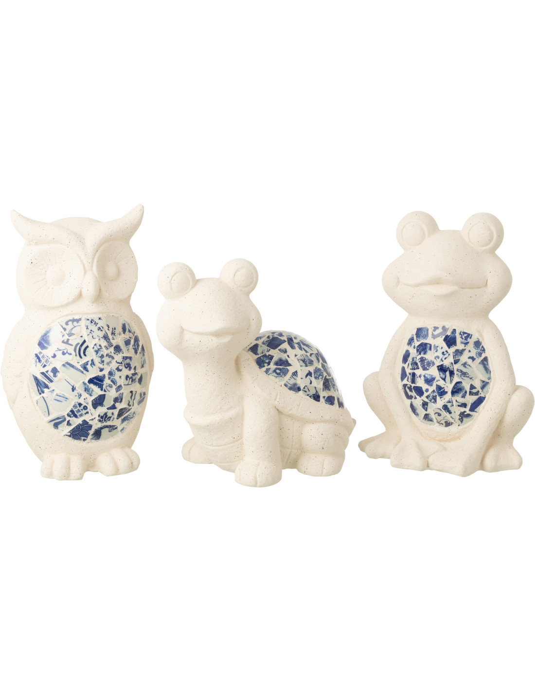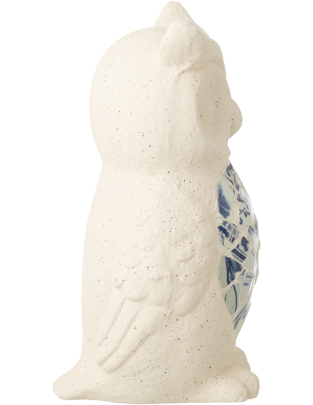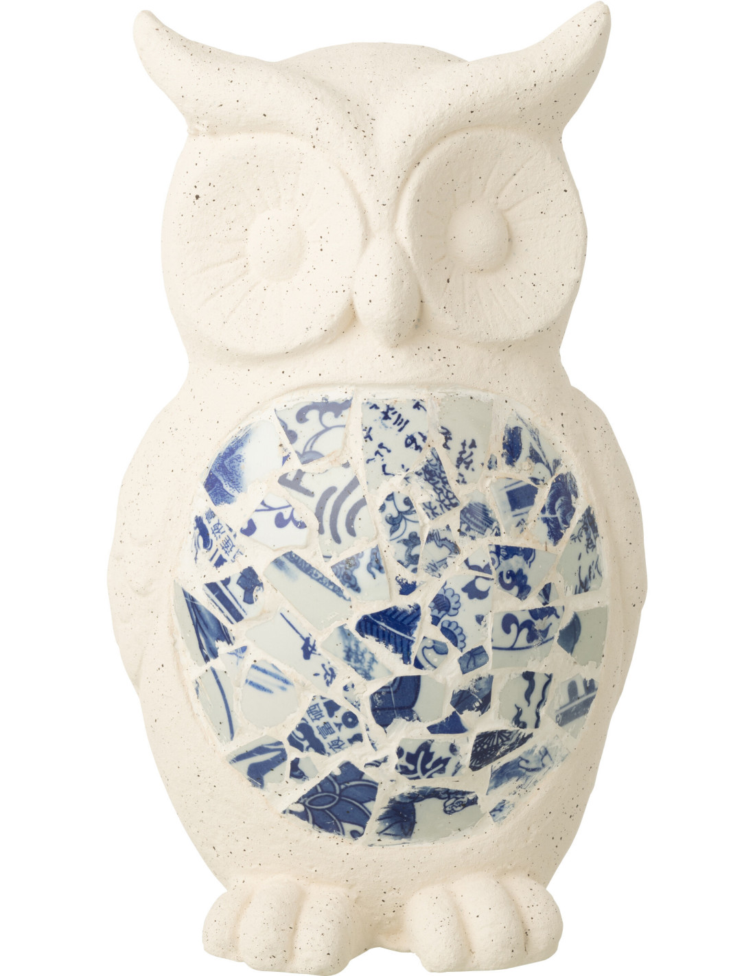 Statuette extérieur Hibou H 41 cm Oxyde de magnésium Beige Mosaïque Bleu Doralin