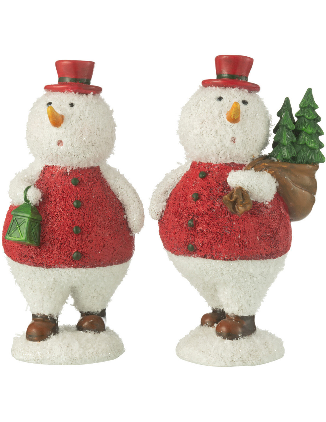 Statuettes déco Bonhommes de neige Hauteur 18 cm en Résine Blanc Rouge Vert Thariel (Lot de 2)