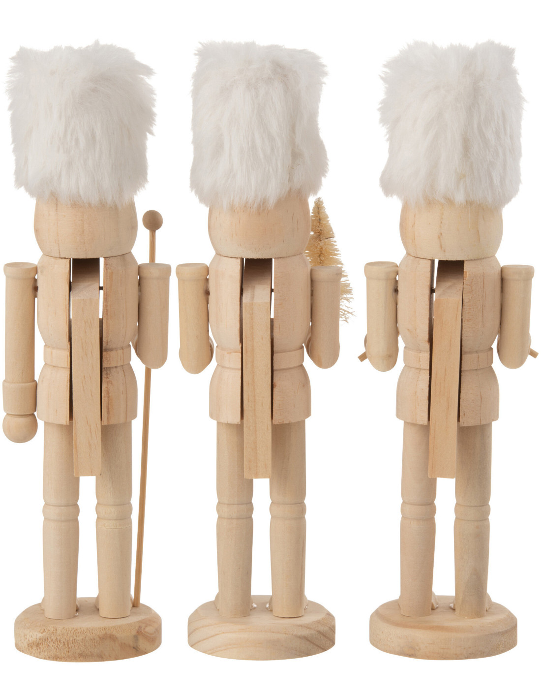 Statuettes déco de Noël Soldats Casse noisette Hauteur 27 cm en Bois Naturel Tissu Blanc Tralinne (Lot de 3) - 1