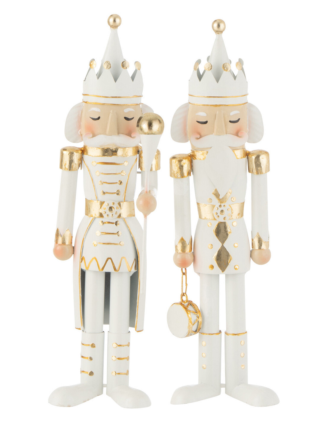 Statuettes déco de Noël Soldats Casse noisette Hauteur 36 cm en Métal Blanc Doré Lysvene (Lot de 2)