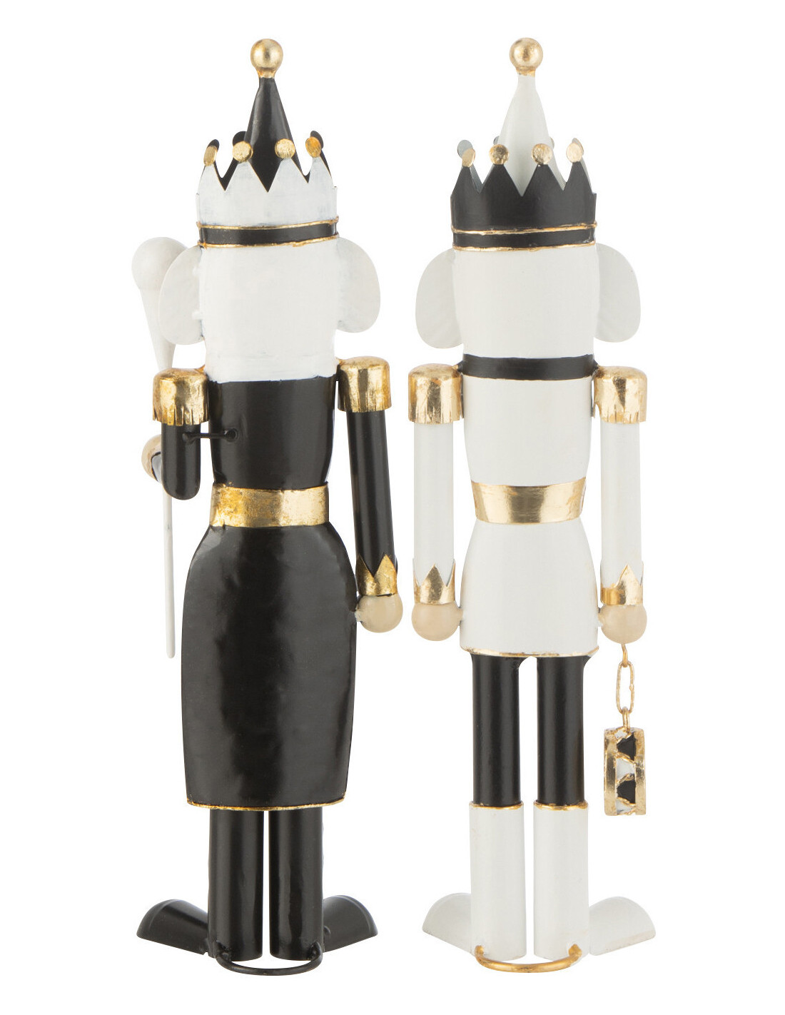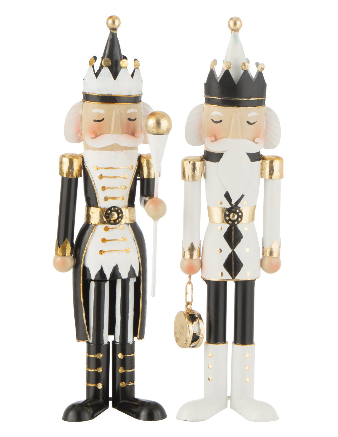 Statuettes déco de Noël Soldats Casse noisette Hauteur 36 cm en Métal Noir Blanc Cylvyr (Lot de 2)