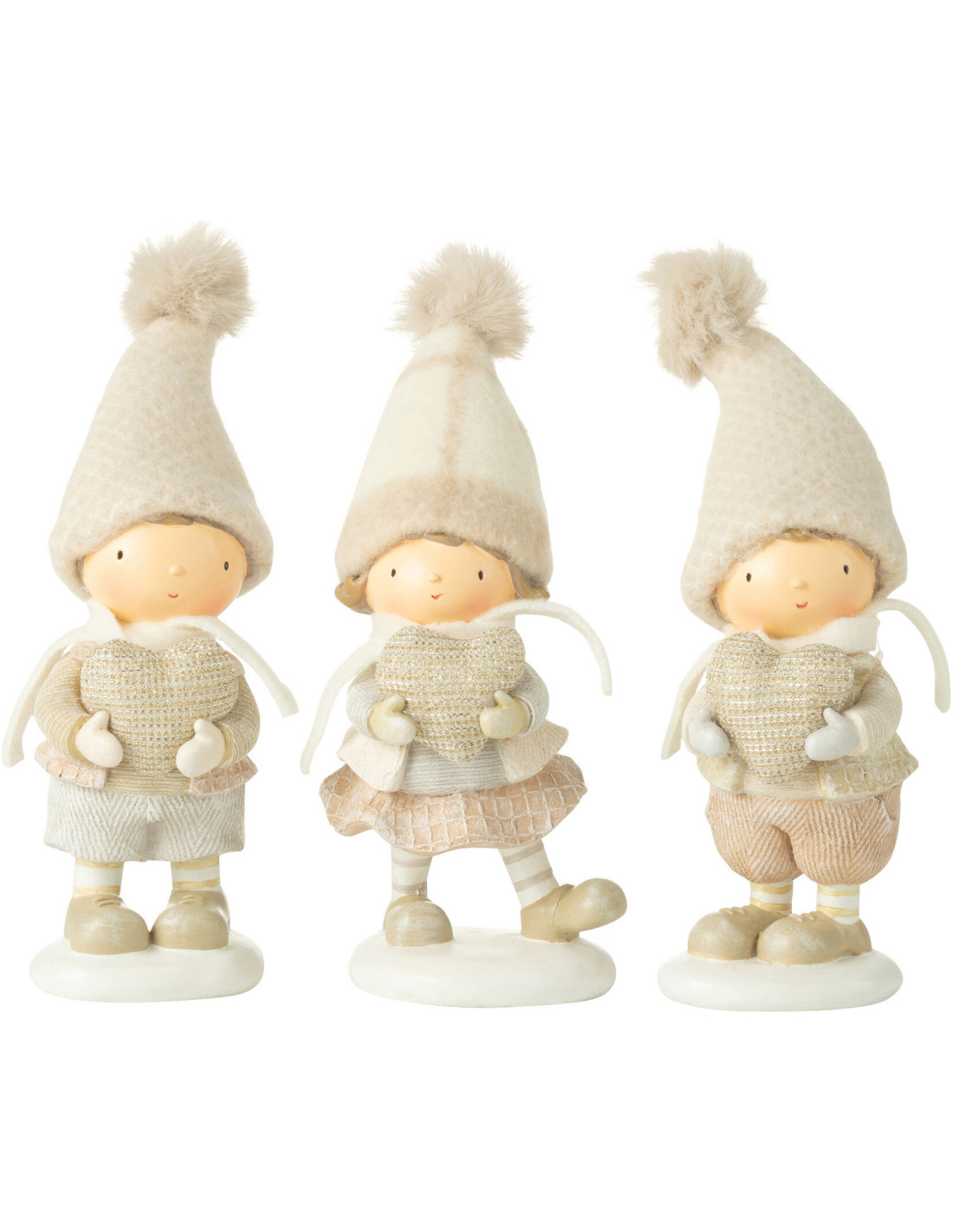 Statuettes déco Enfants Bonnets Coeurs Hauteur 19 cm en Résine Beige Lysath (Lot de 3)