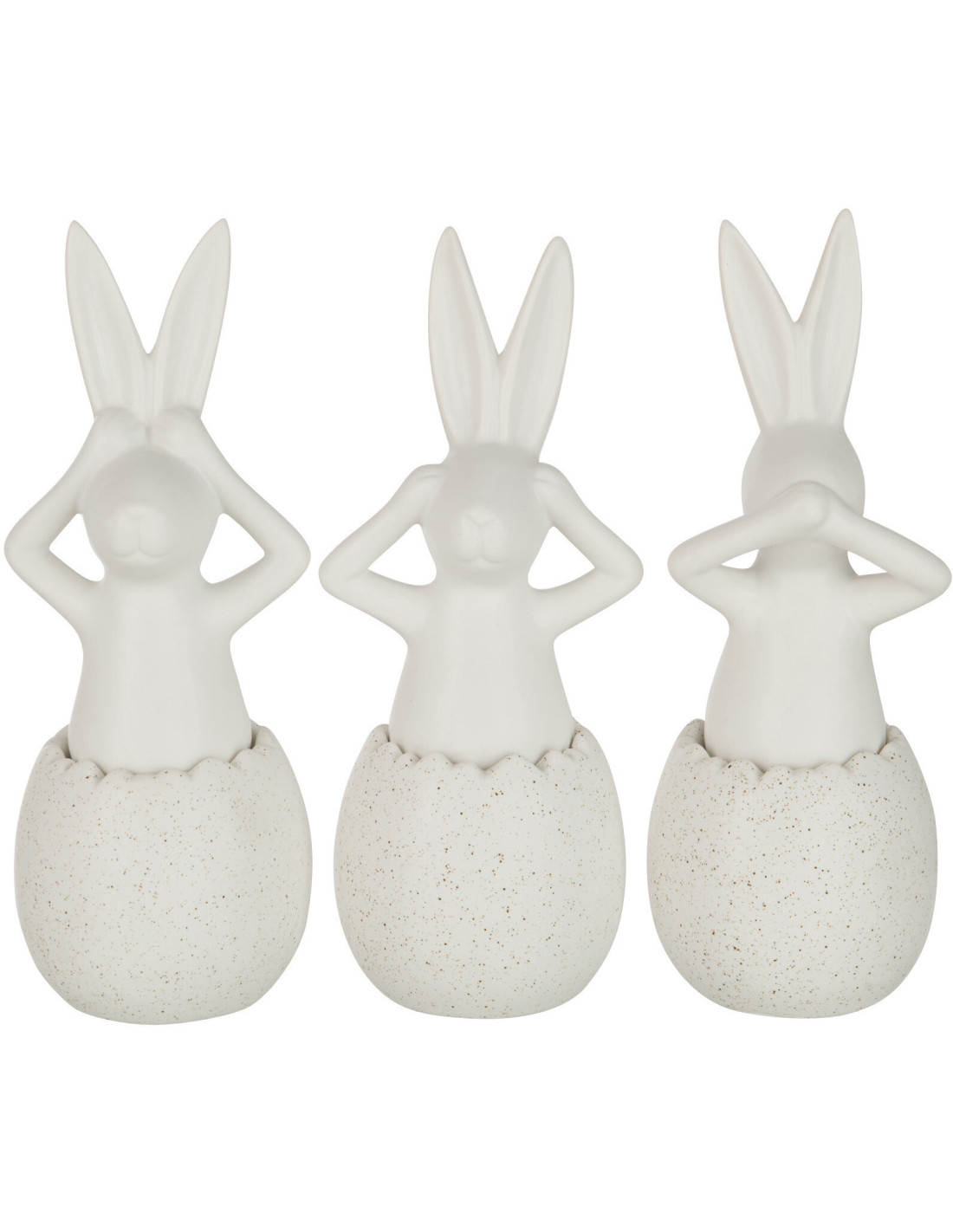 Statuettes déco Lapins Entendre Voir Se taire Hauteur 25 cm en Céramique Blanc Lysko (Lot de 3)