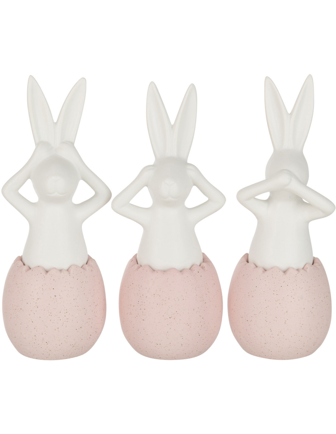 Statuettes déco Lapins Entendre Voir Se taire Hauteur 25 cm en Céramique Rose Blanc Lysko (Lot de 3)
