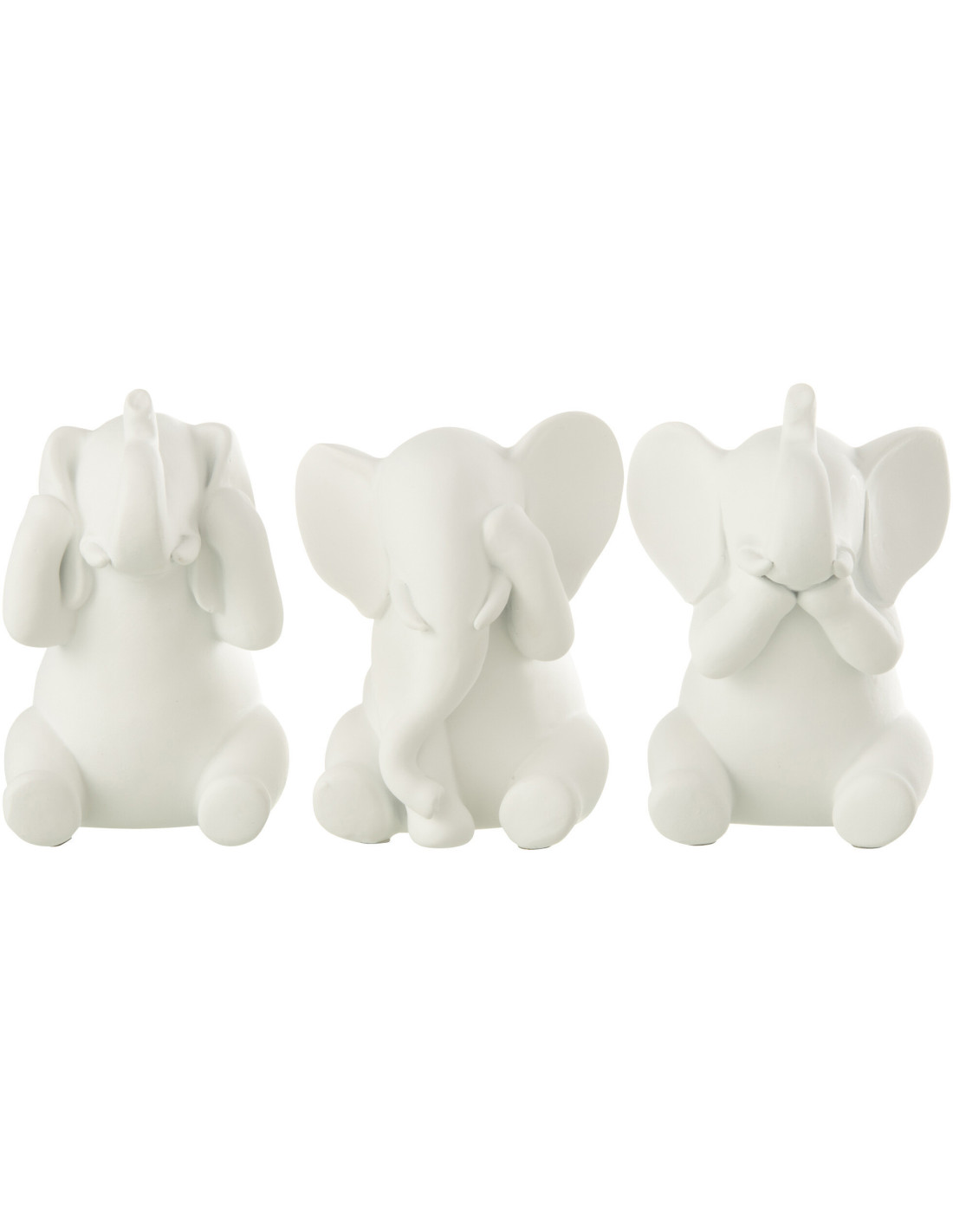 Statuettes déco moderne Éléphant Voir Entendre Se taire Hauteur 13 cm en Résine Blanc Zena (Lot de 3)