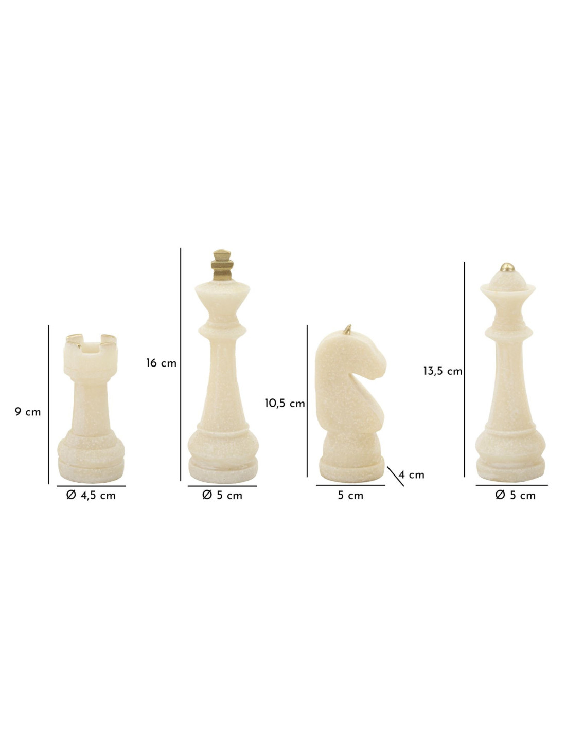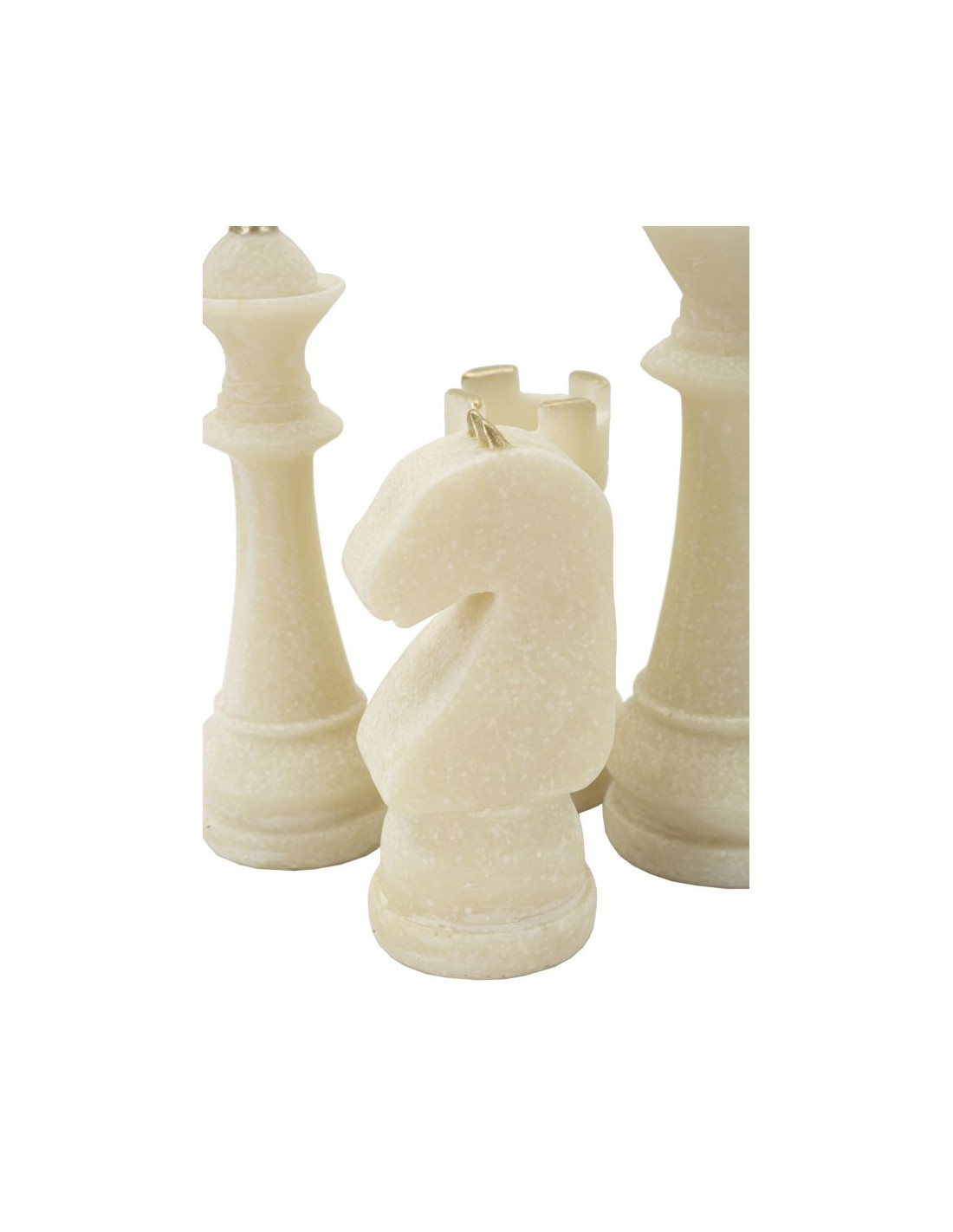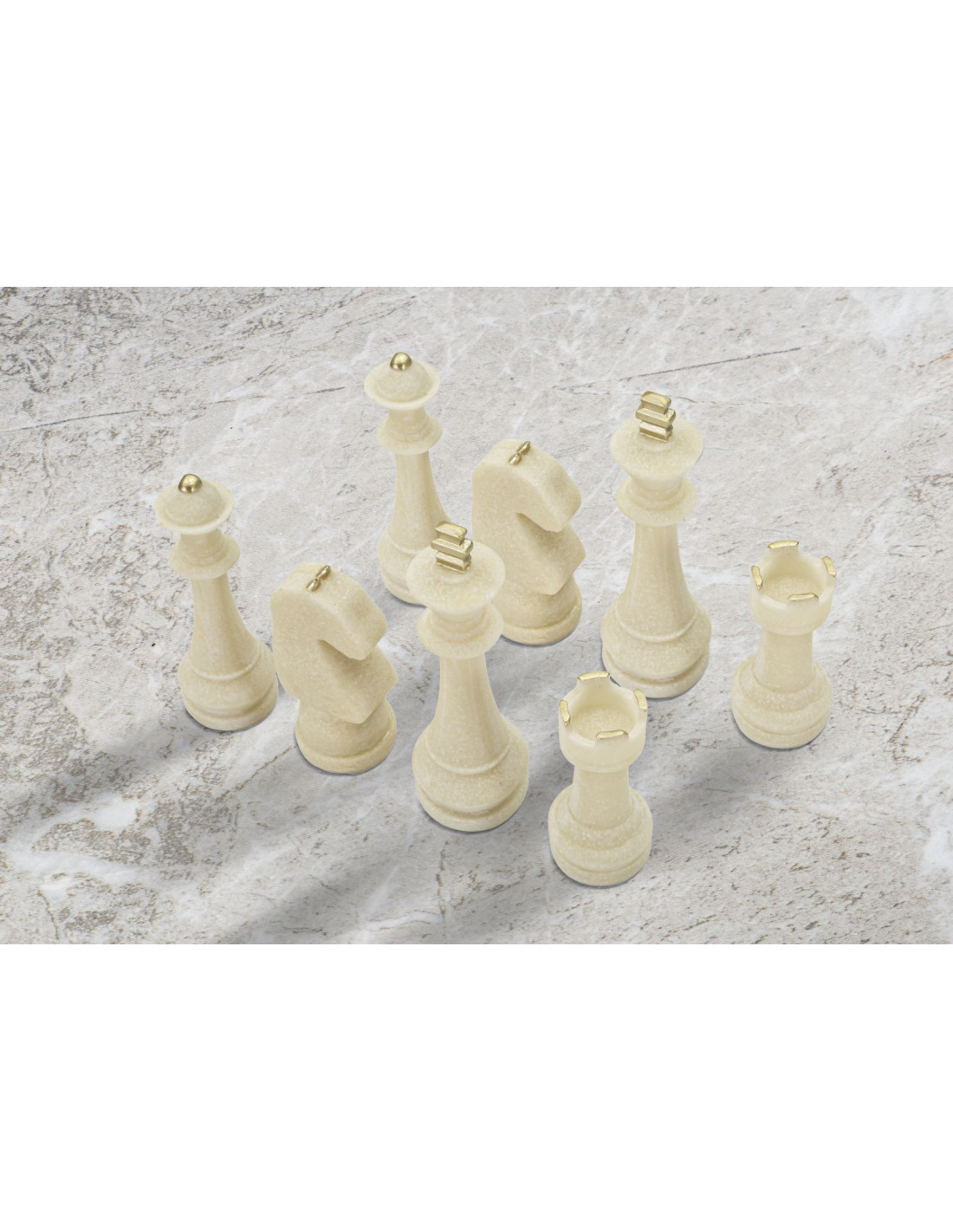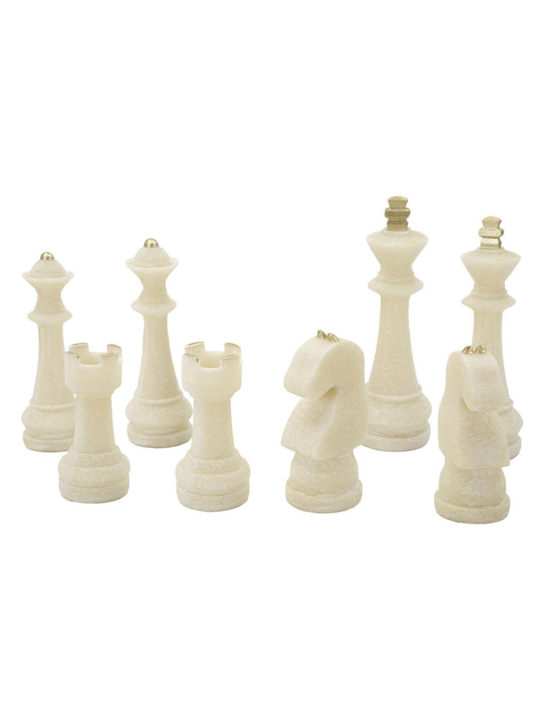 Statuettes déco modernes Pièces d'échecs en Résine Blanc Effet quartz Doré Scacchi (Lot de 8)