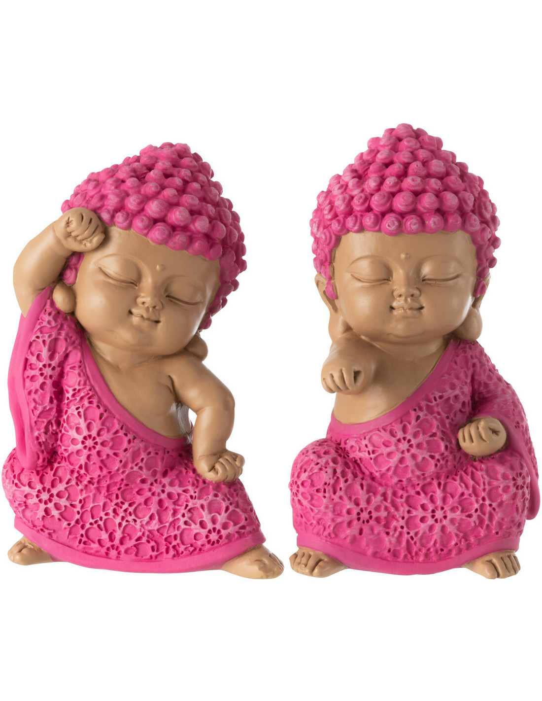Statuettes déco Moines Combattants Hauteur 11 cm en Résine Rose fuchsia Bleu azur Tanu (Lot de 2)