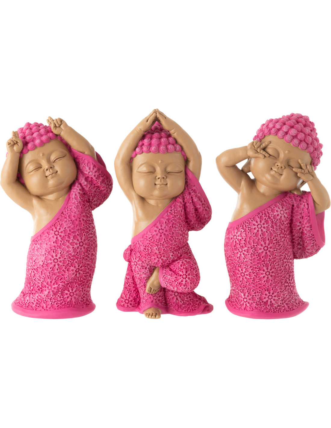 Statuettes déco Moines Dansants Hauteur 20 cm en Résine Rose fuchsia Bleu azur Tanu (Lot de 3)