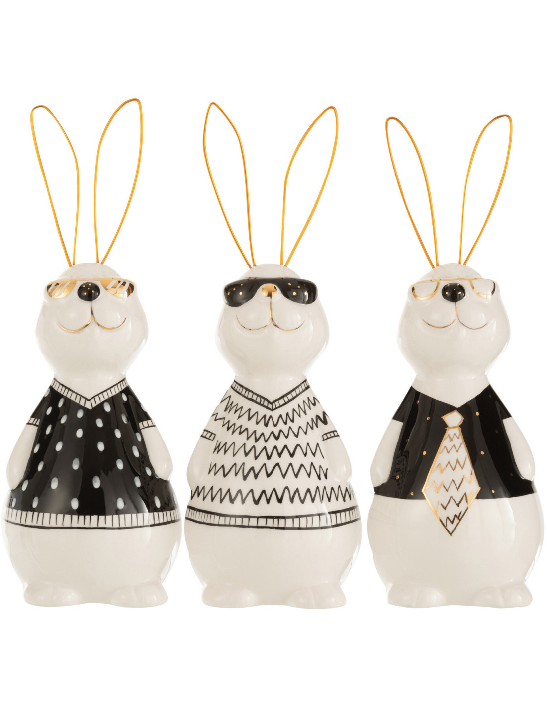 Statuettes déco originales Lapins chics Hauteur 19 cm en Céramique Blanc Noir Max (Lot de 3) - 1