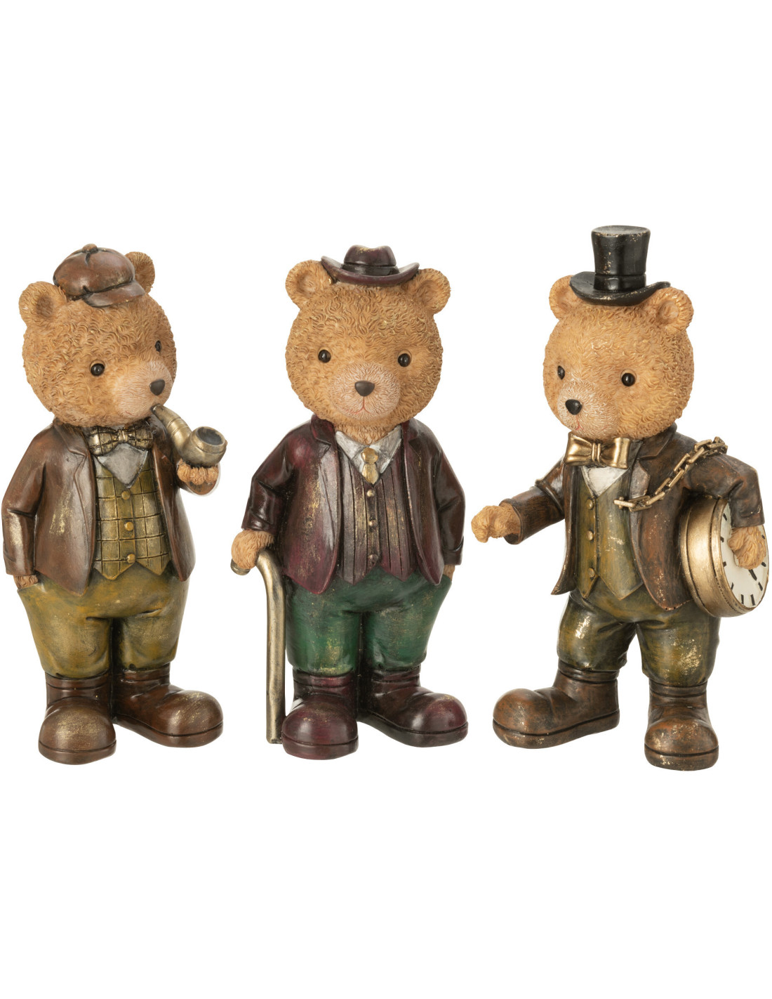 Statuettes déco Oursons chics Hauteur 26 cm en Résine Marron Beige Beary (Lot de 3)