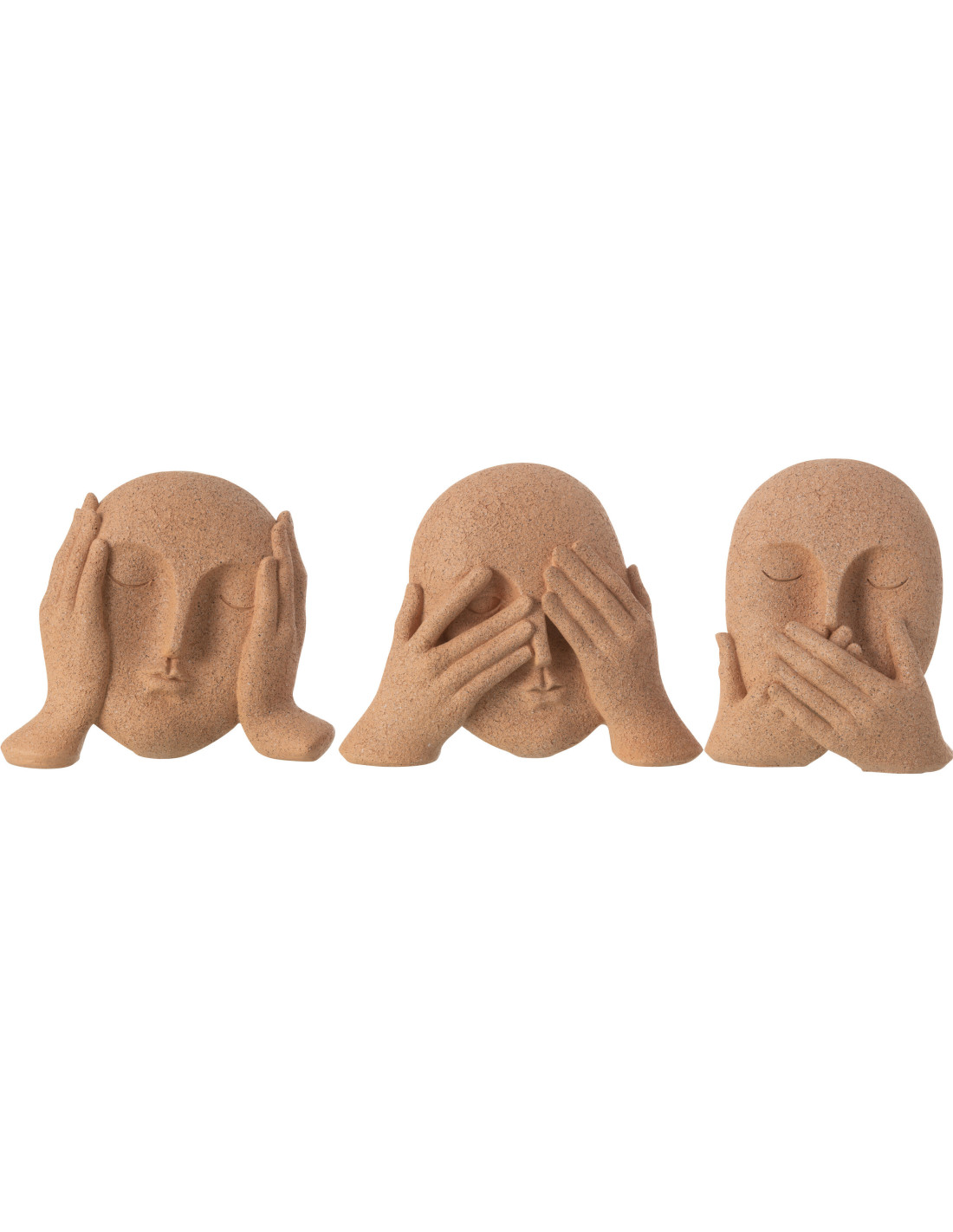 Statuettes modernes Visages Voir Entendre Se taire Hauteur 17 cm en Résine Terracotta Moucheté Lira (Lot de 3)