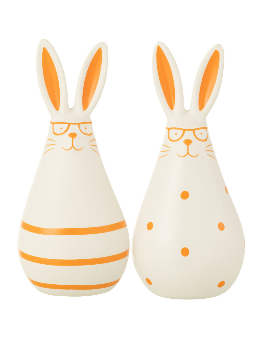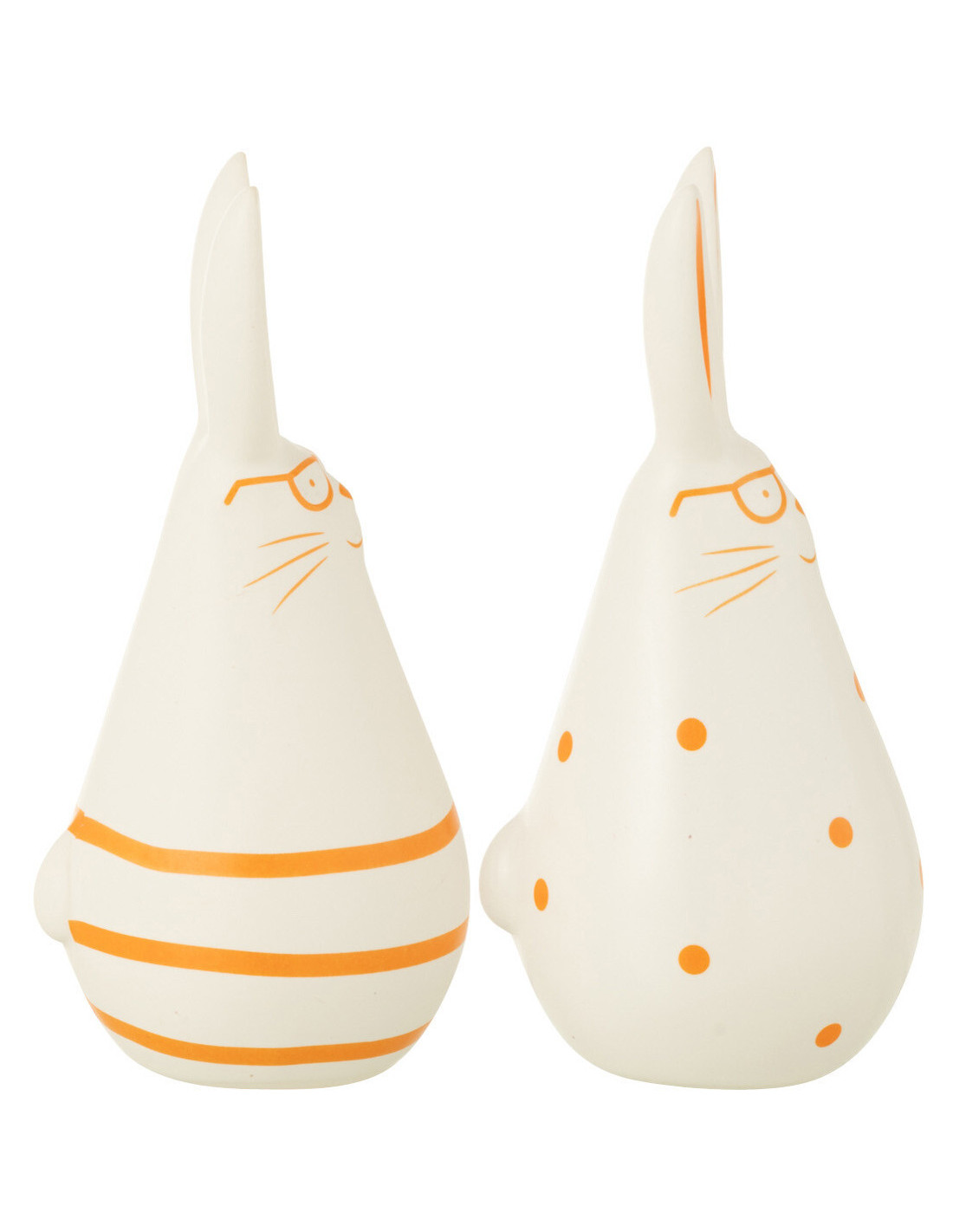 Statuettes originales Lapins Lunettes Hauteur 15 cm en Céramique Blanc Orange Elowyn (Lot de 2) - 1