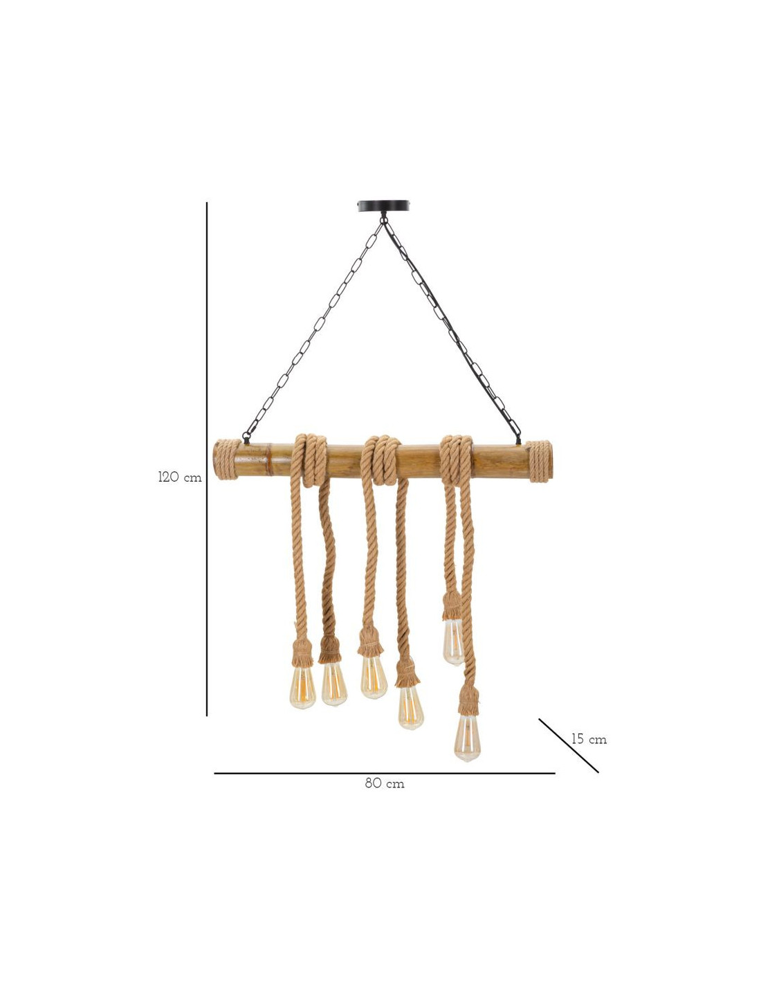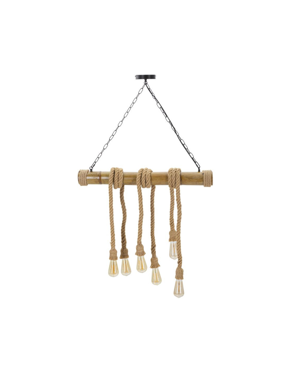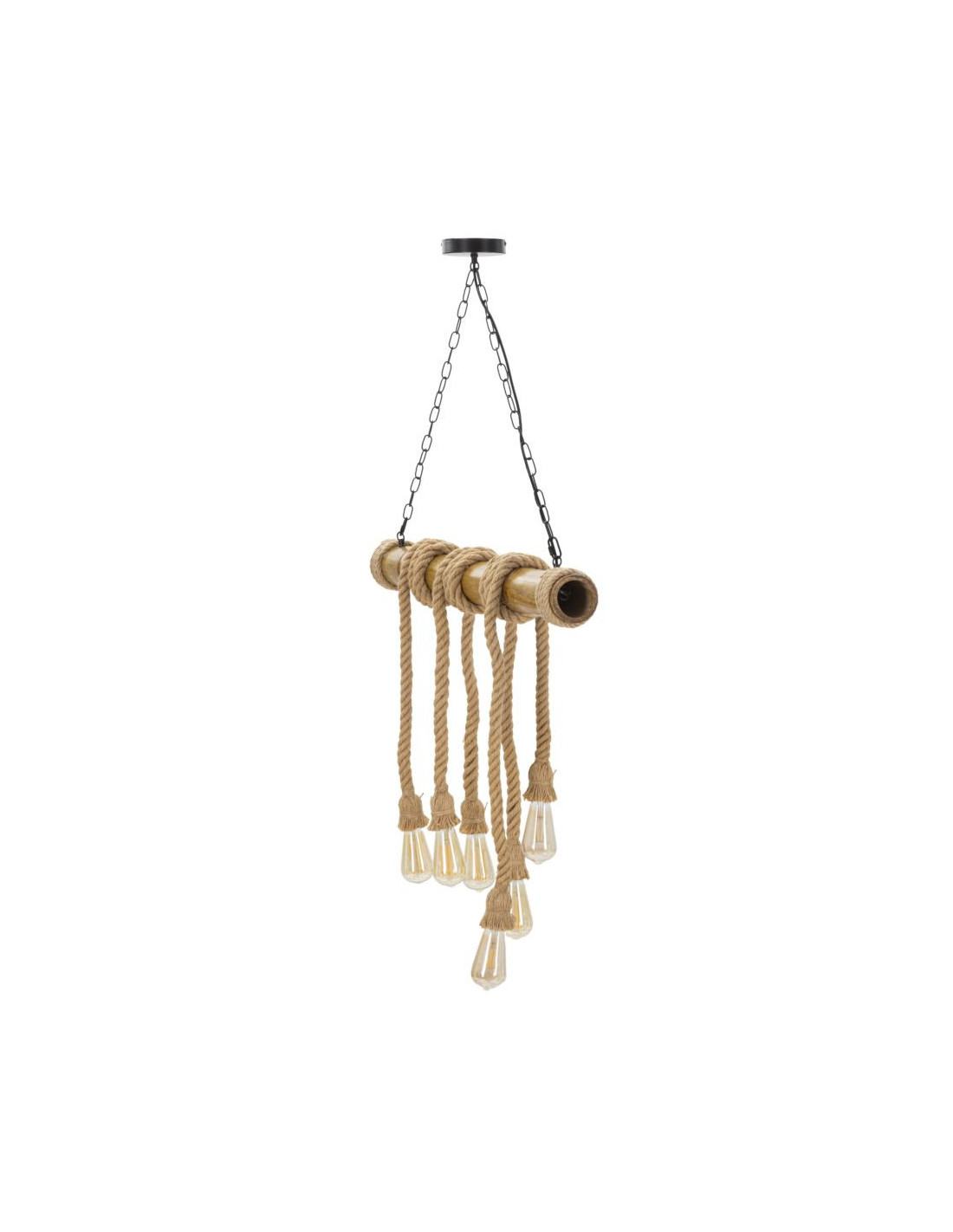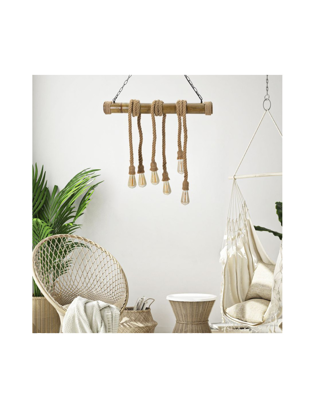 Suspension bohème 6 lampes 80 cm Bambou Corde Naturel Bamboo