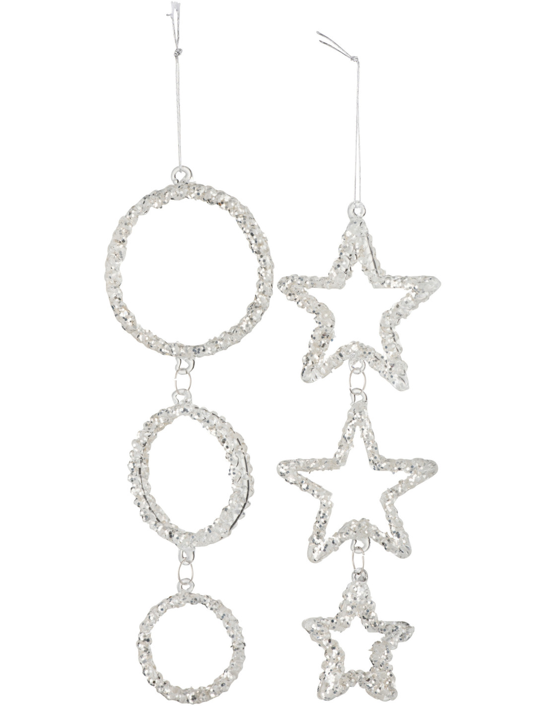 Suspension de Noël Étoile & Cercle en Verre Argenté Avec paillettes (Lot de 2)