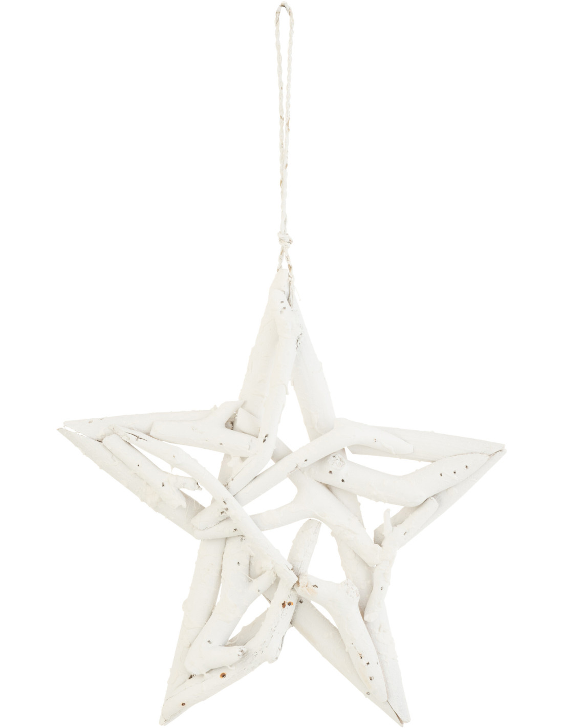 Suspension de Noël Étoile Hauteur 25 cm en Bois recyclé Blanc