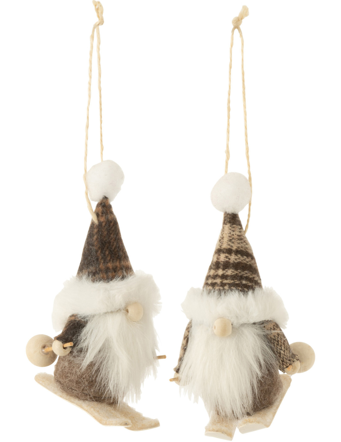 Suspension de Noël Lutin à ski Hauteur 15 cm en Polyester Marron (Lot de 2)