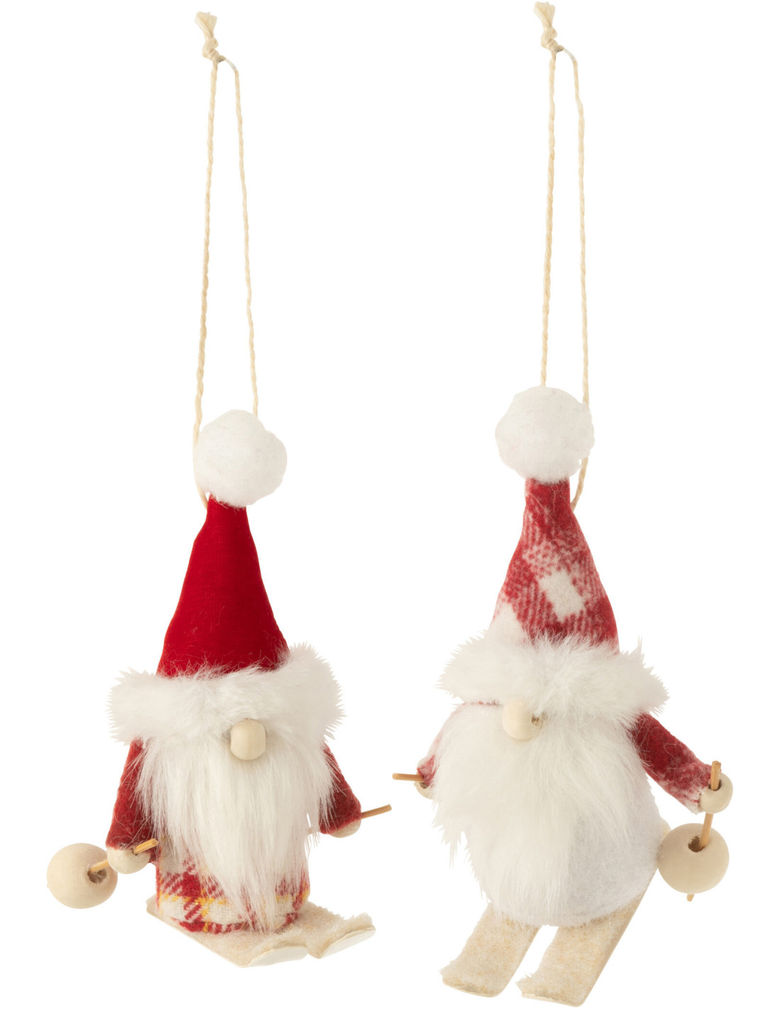 Suspension de Noël Lutin à ski Hauteur 15 cm en Polyester Rouge Blanc (Lot de 2) - 1