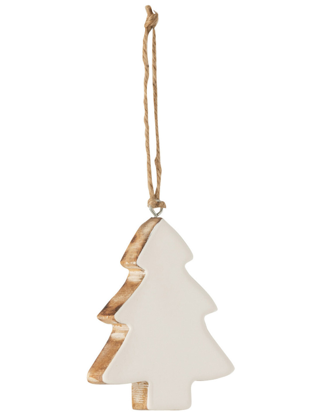 Suspension de Noël Sapin en Bois de manguier Blanc Naturel - 1
