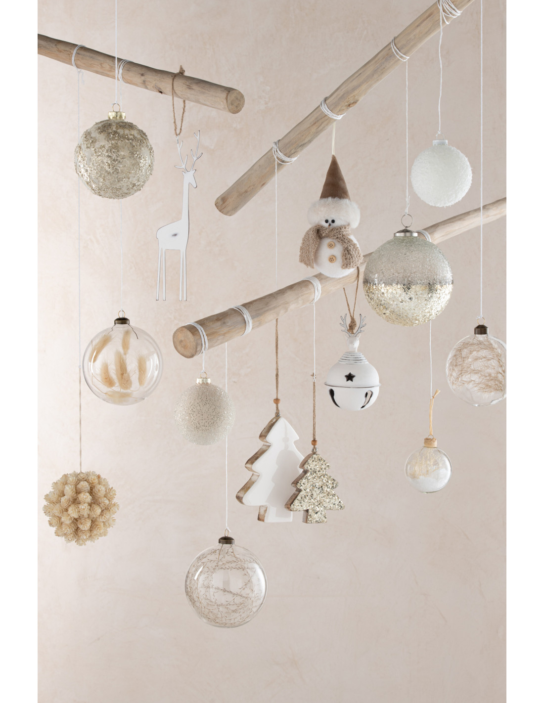 Suspension de Noël Sapin en Bois de manguier Blanc Naturel - 3