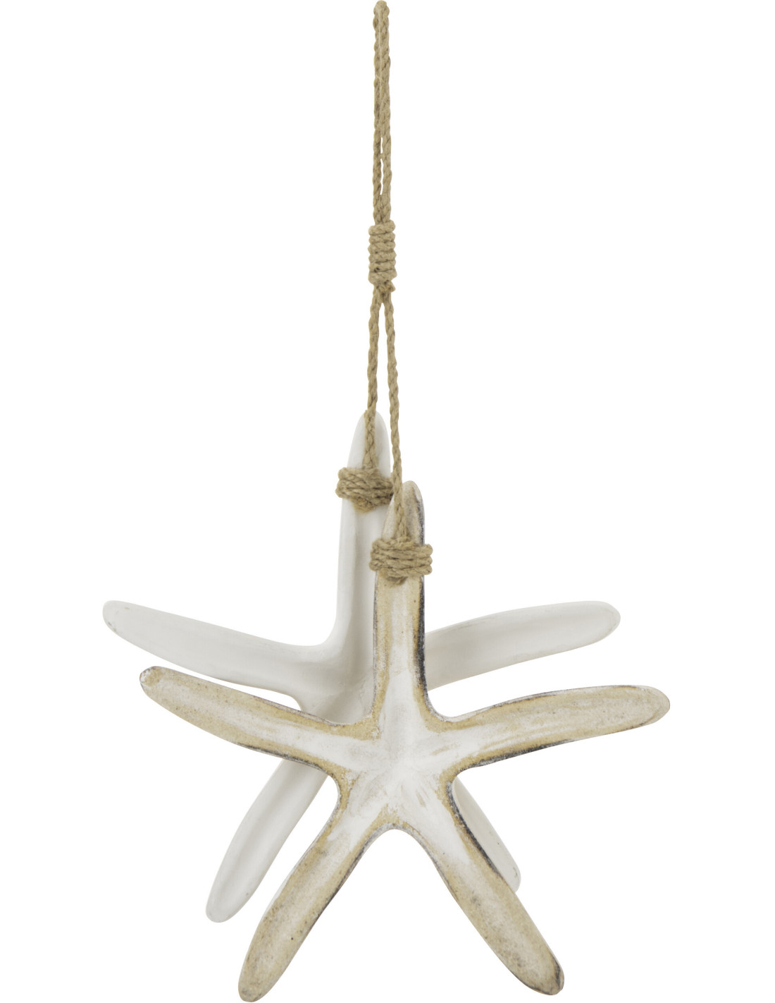 Suspension déco bord de mer 2 Étoiles de mer Bois MDF Naturel Blanc Corde Tressé Nautilia