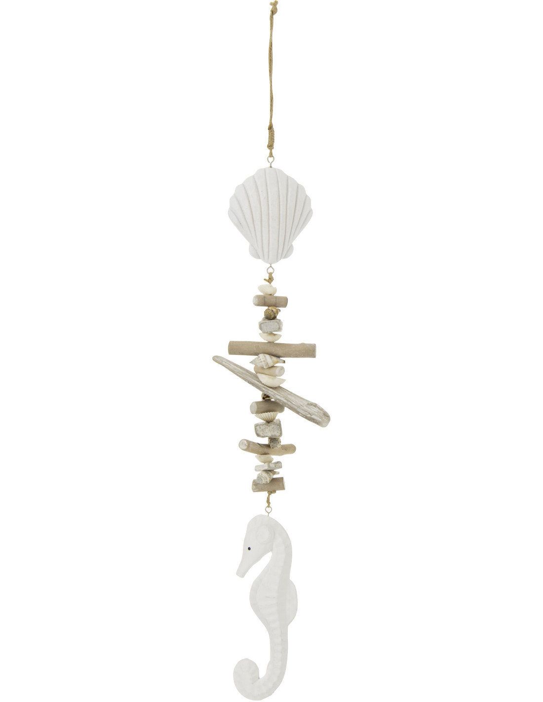 Suspension déco bord de mer Hippocampe & Coquillage Résine Blanc Bois flotté Naturel Nautilia