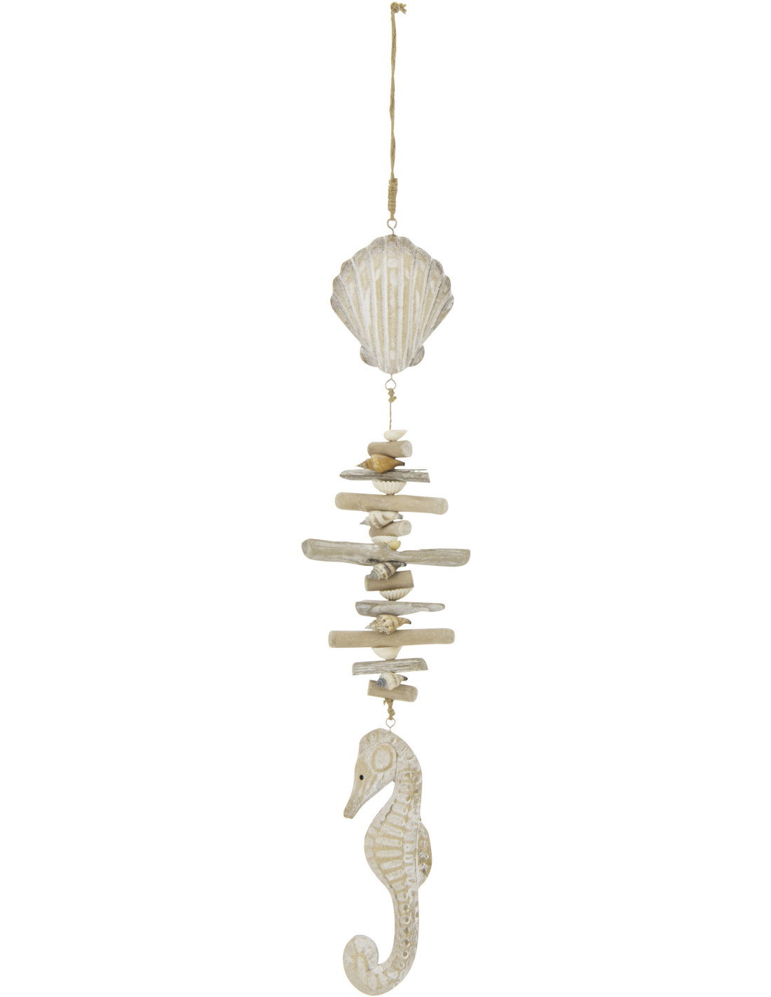Suspension déco bord de mer Hippocampe & Coquillage Résine Naturel Blanchi Bois flotté Naturel Nautilia