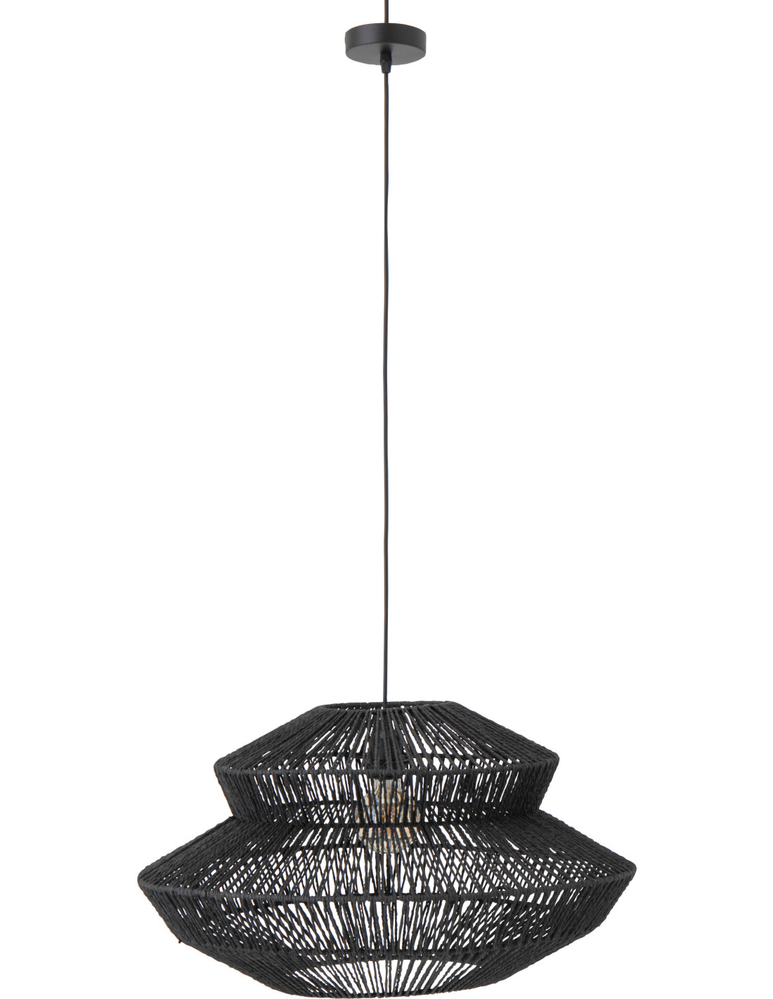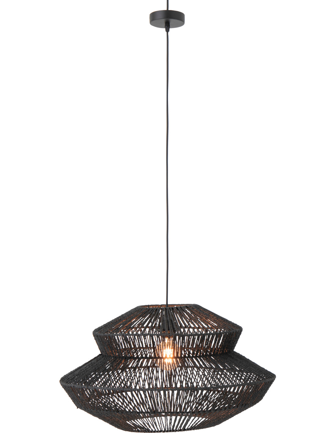 Suspension style ethnique moderne D 60 cm Corde Noir Tressé Métal Noctyra