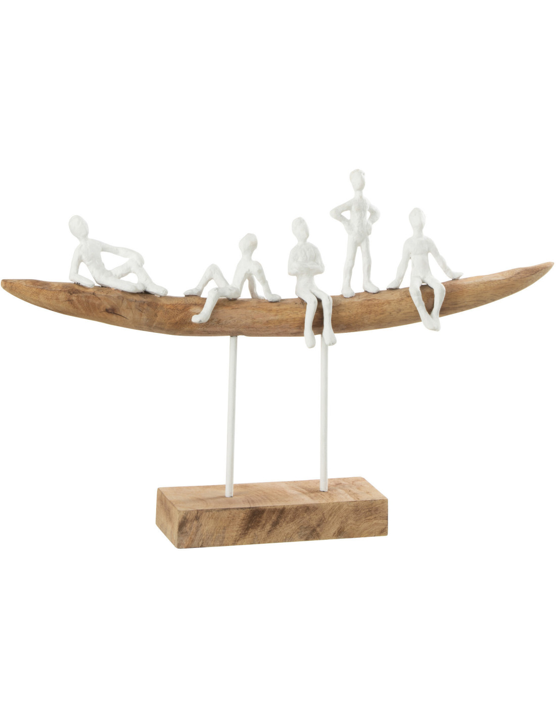 Décoration sur pied Personnages sur banc 30 cm Tabia en Bois de Manguier Naturel Métal Blanc - 1
