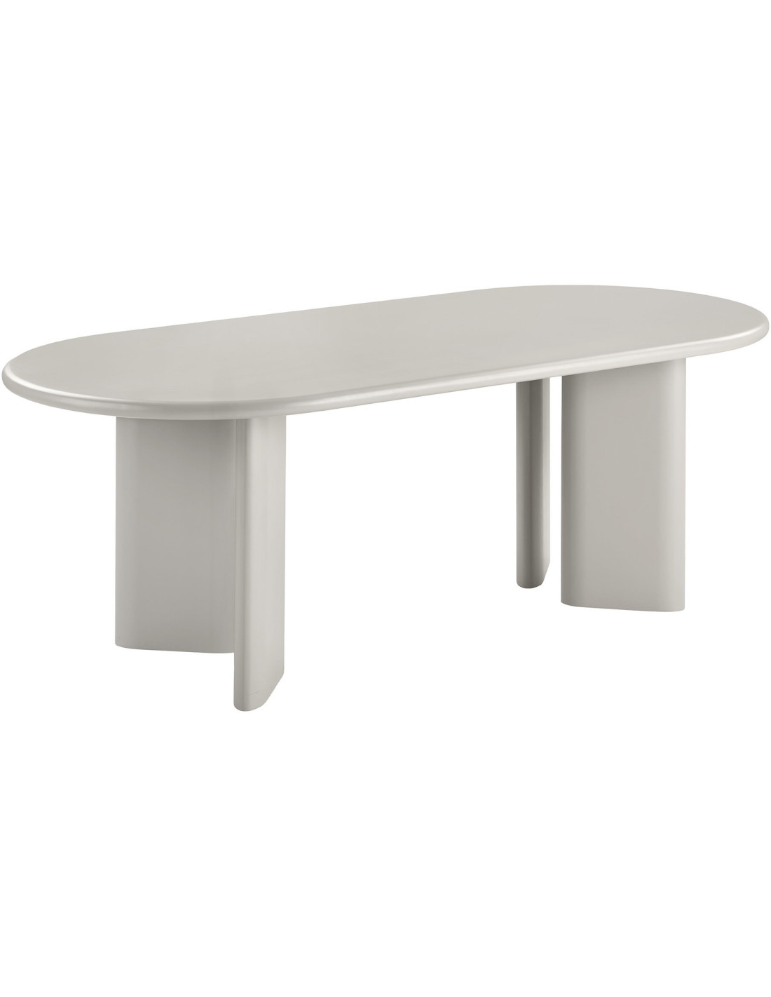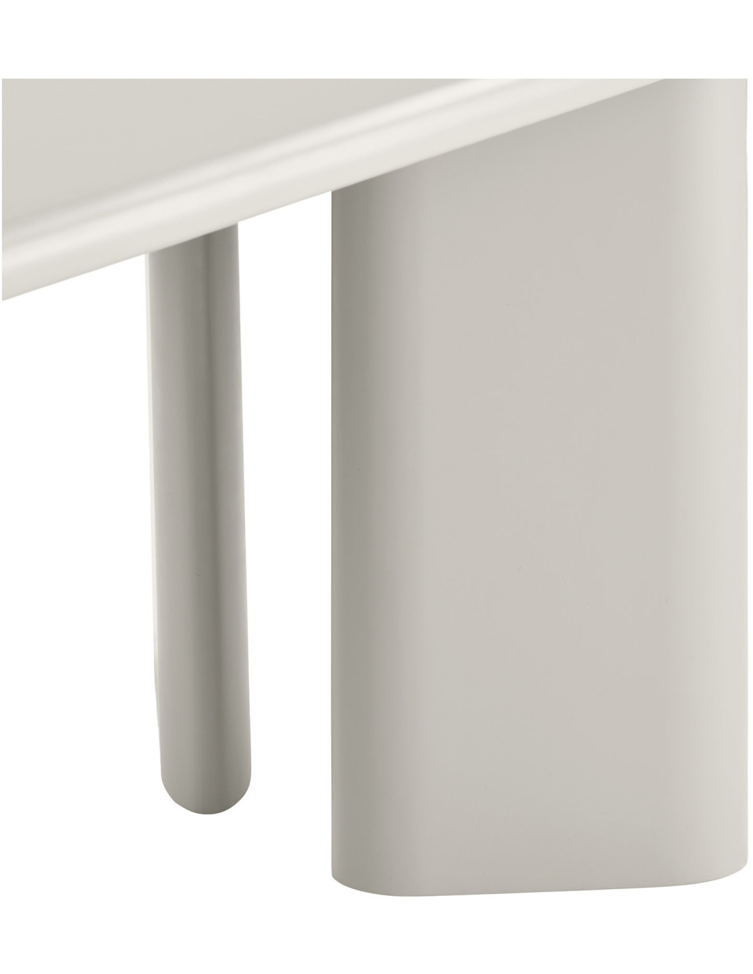 La table Nagano affirme une identité forte dès le premier regard. Son plateau allongé repose sur un ensemble de pieds cylindriques pleins, créant une composition presque architecturale. Les volumes sont nets, continus, sans rupture visuelle, ce qui donne à l’ensemble une présence stable et maîtrisée.