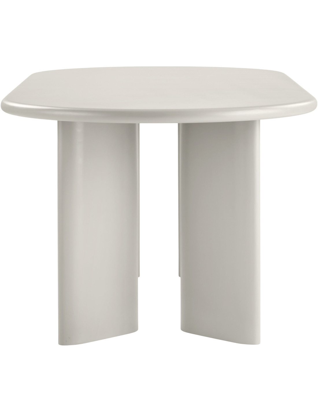 La table est conçue en panneaux de bois composite, ce qui permet d’obtenir des surfaces régulières et des volumes homogènes. Ce matériau est particulièrement adapté à ce type de design monobloc où la continuité visuelle est essentielle.