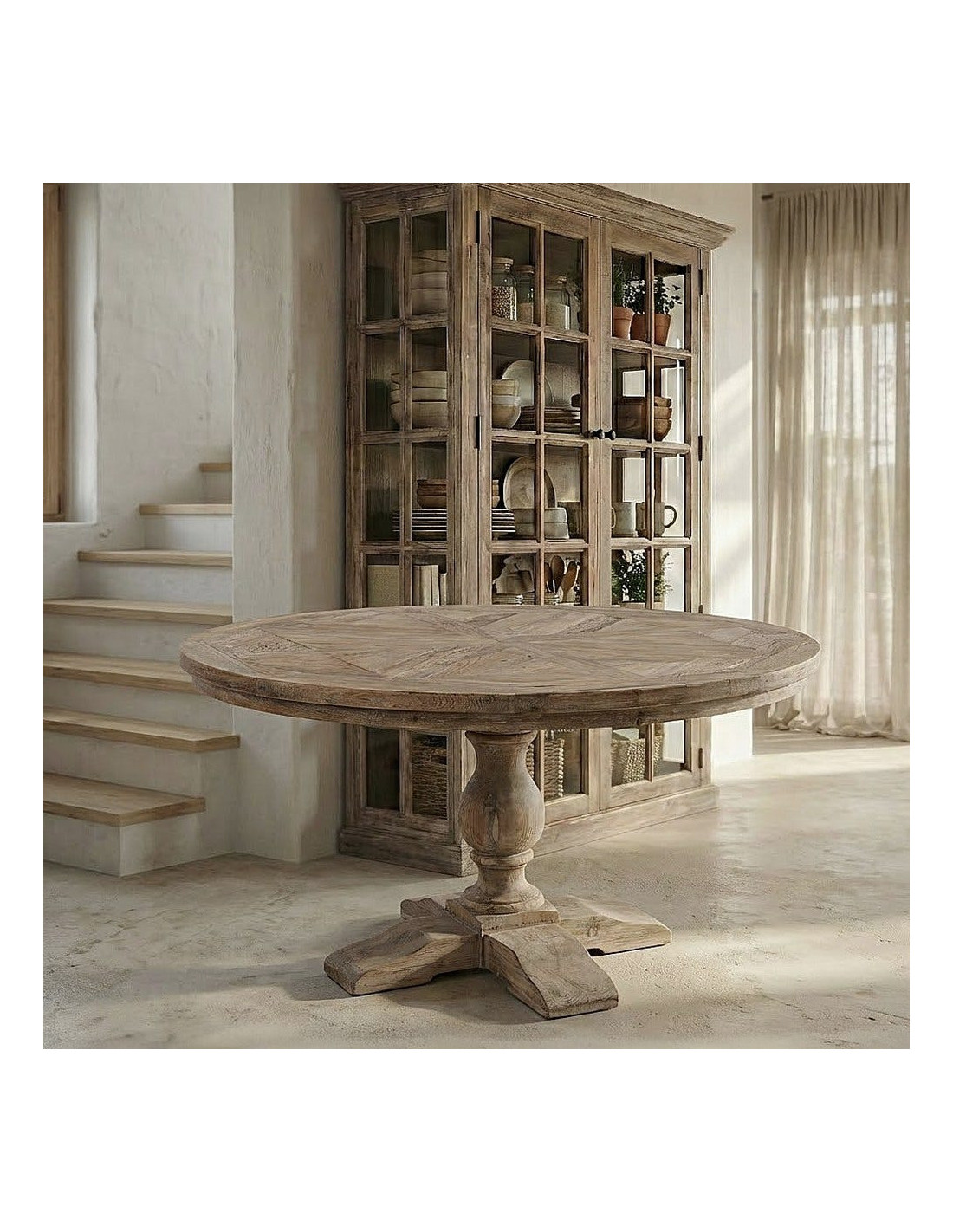 Le pied tourné apporte une touche classique tout en libérant l’espace pour une circulation fluide autour de la table.