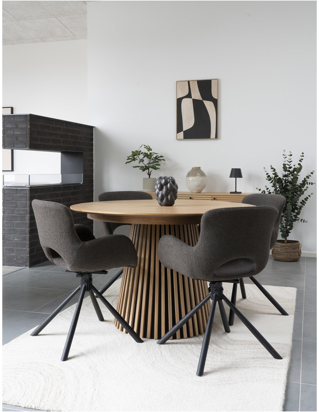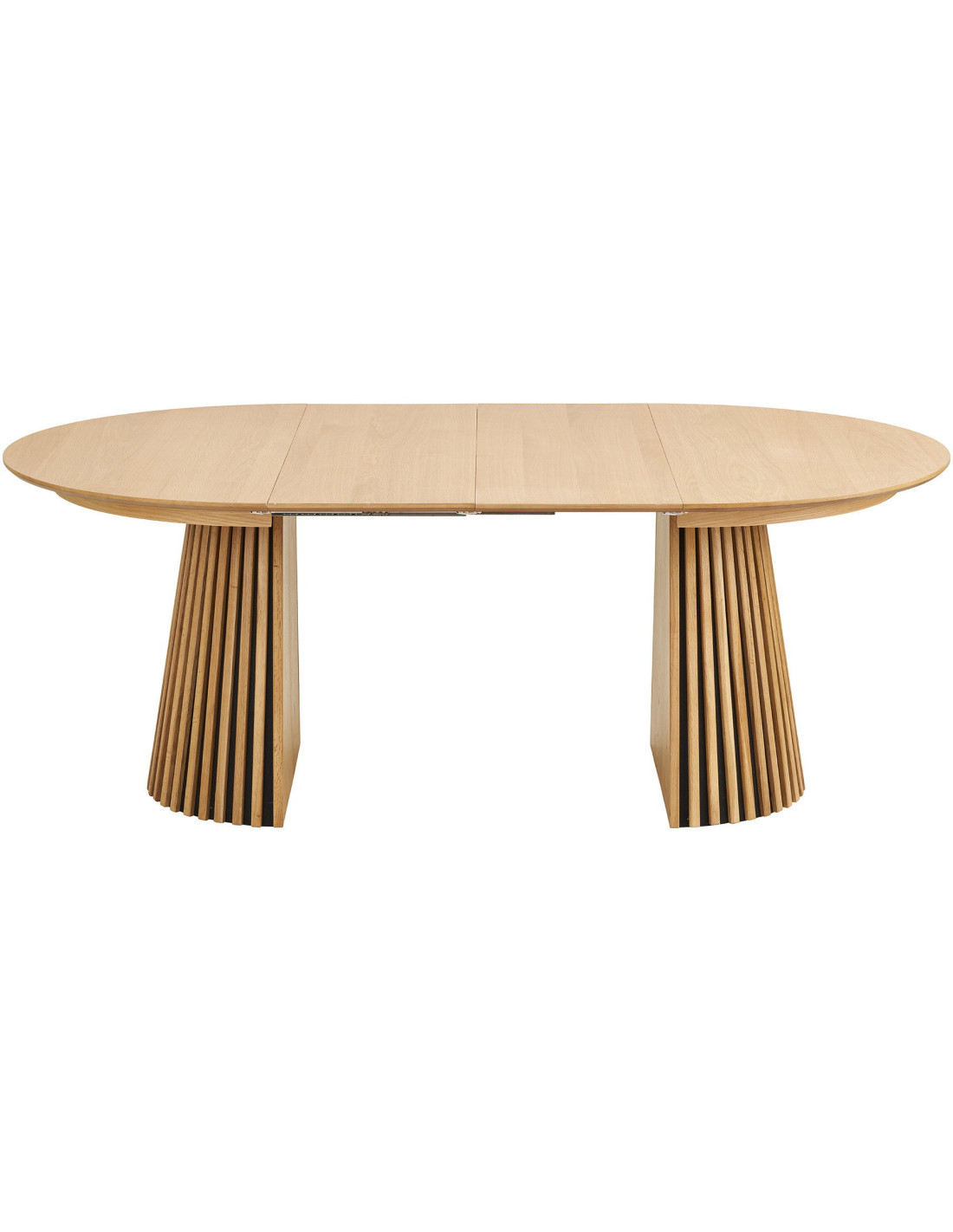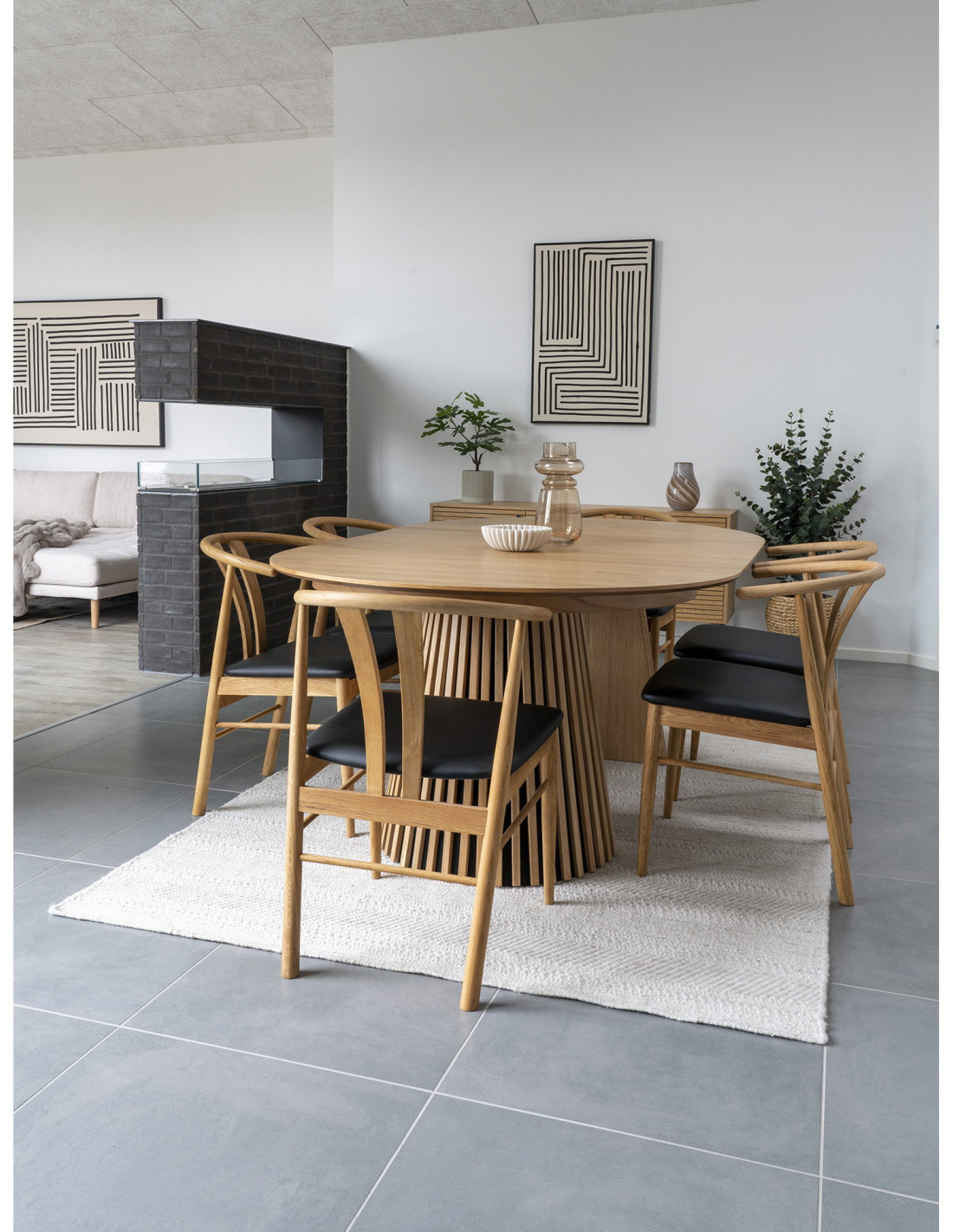 Le chêne naturel apporte de la chaleur et adoucit les proportions. Il permet d’associer facilement la table à différents styles de chaises.
