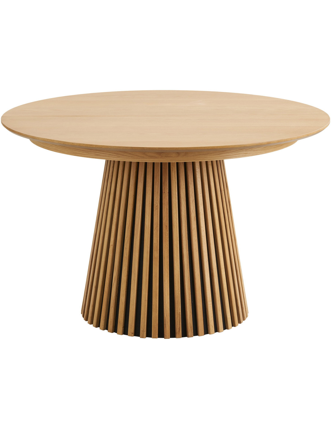 Plateau en MDF avec placage chêne, offrant un rendu homogène et une bonne résistance pour un usage quotidien.