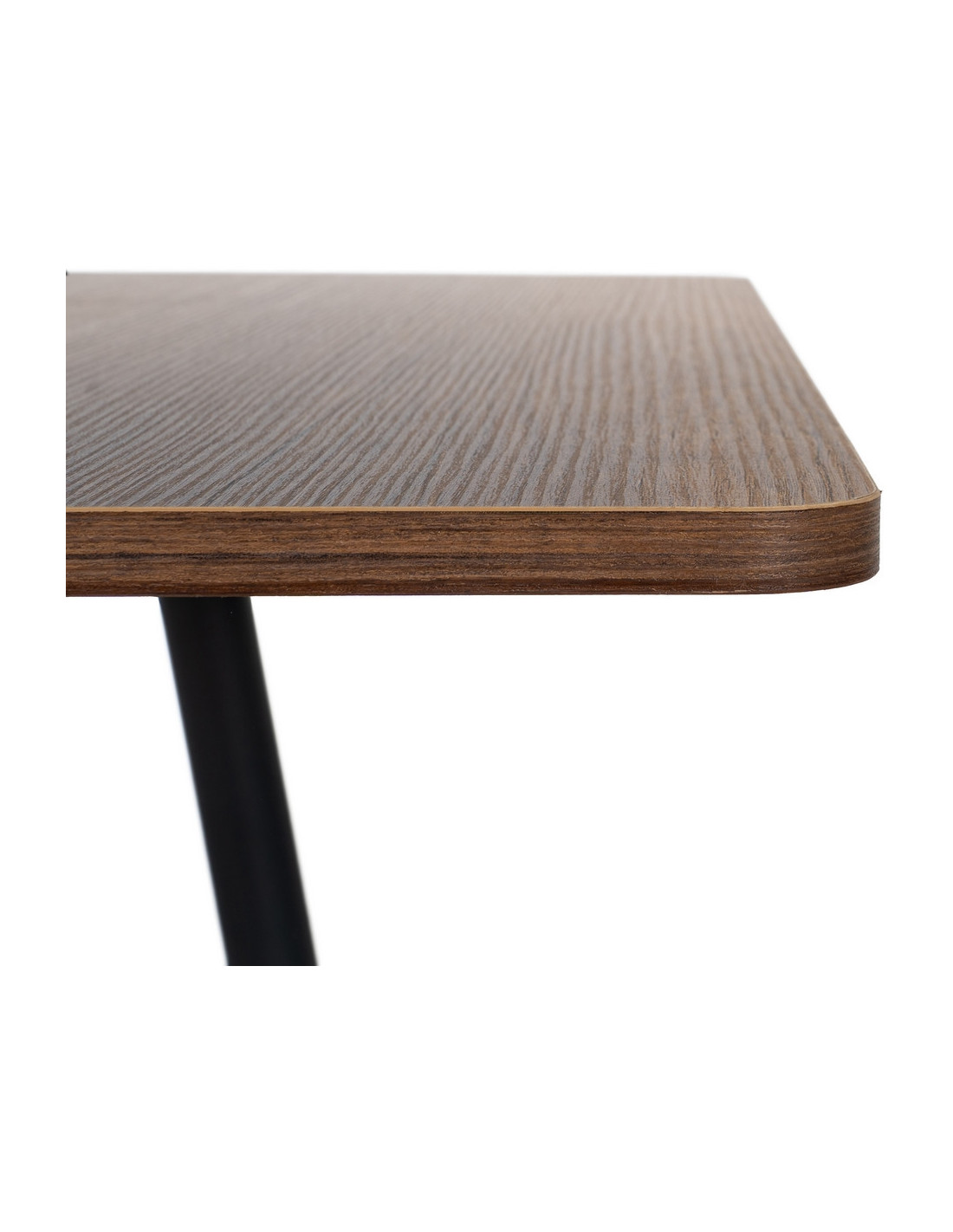 Plateau en panneau mélaminé imitation bois. Structure en métal.