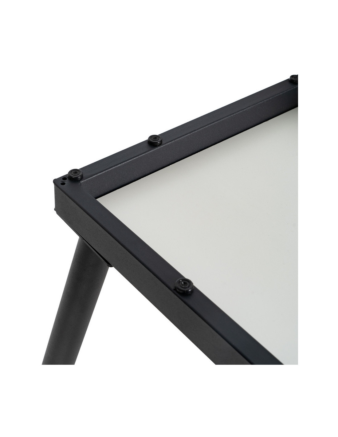Le piètement en métal noir adopte une ligne simple et élancée. Il garantit stabilité tout en conservant une impression de légèreté.