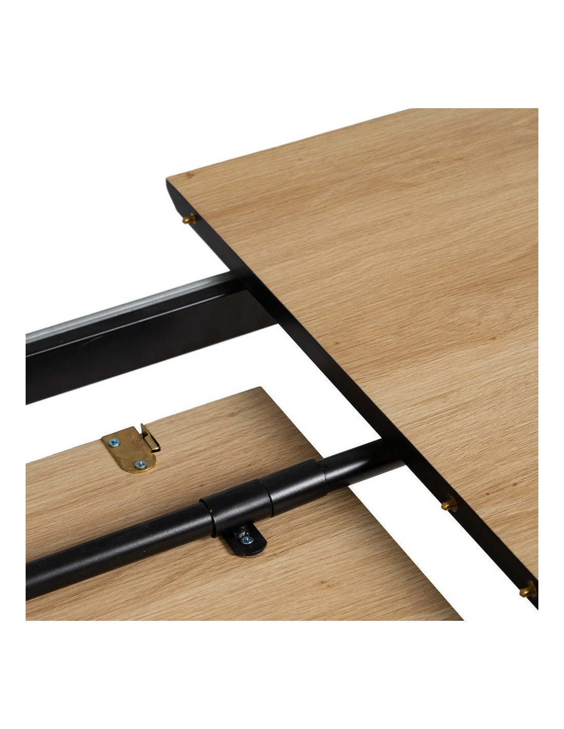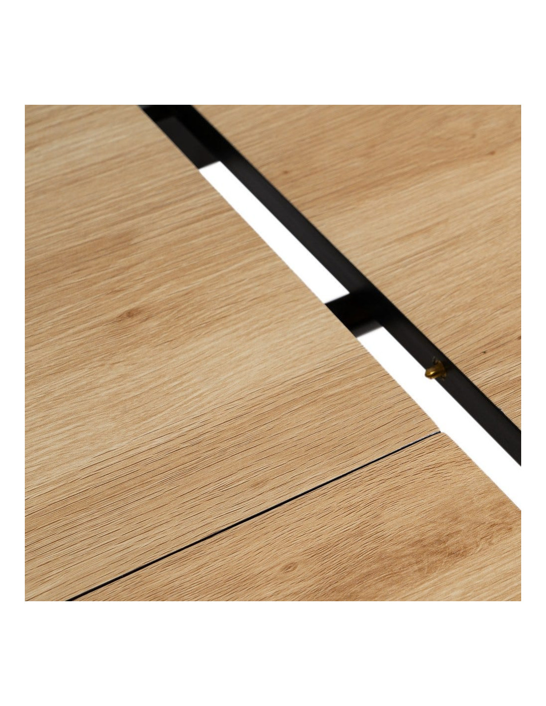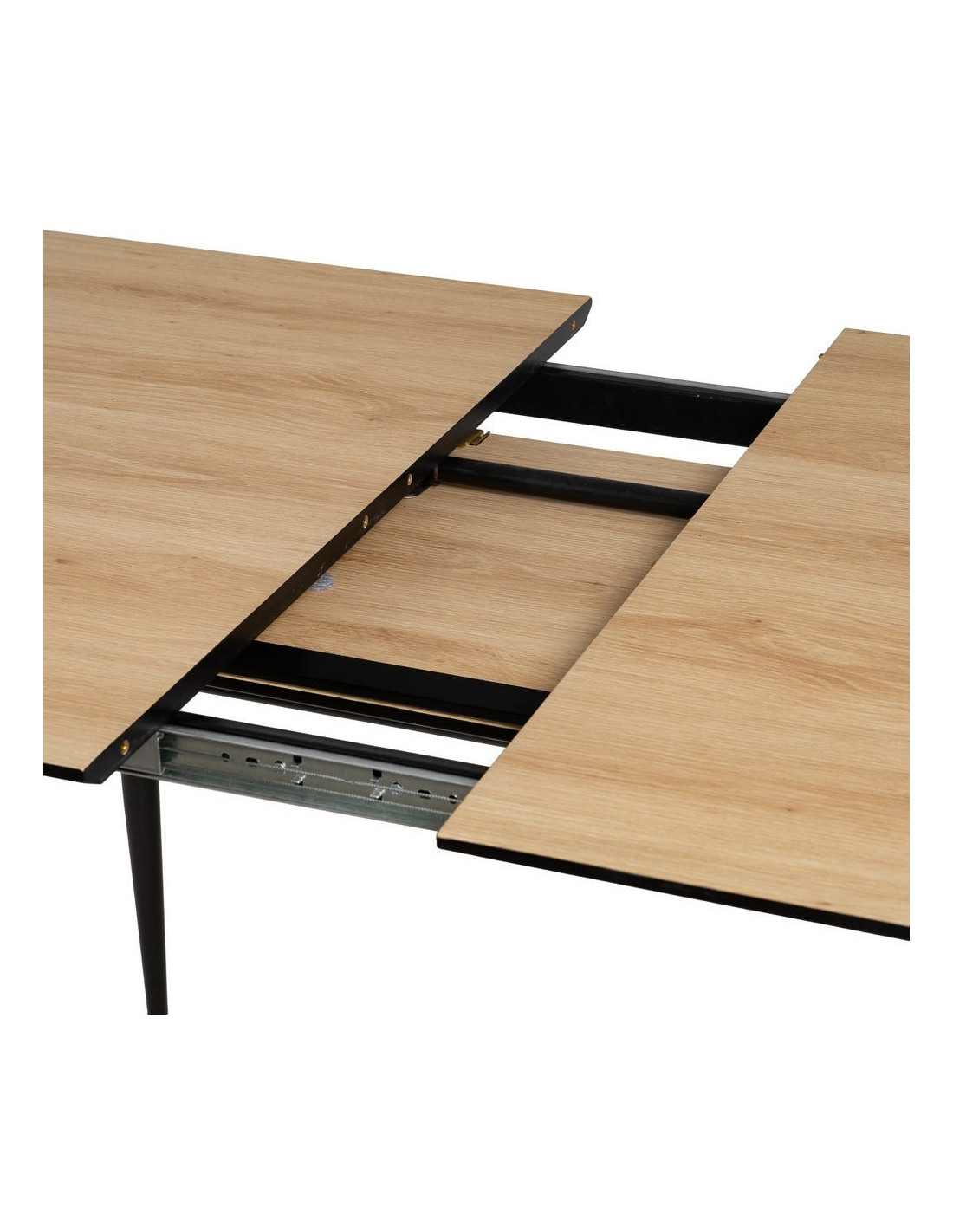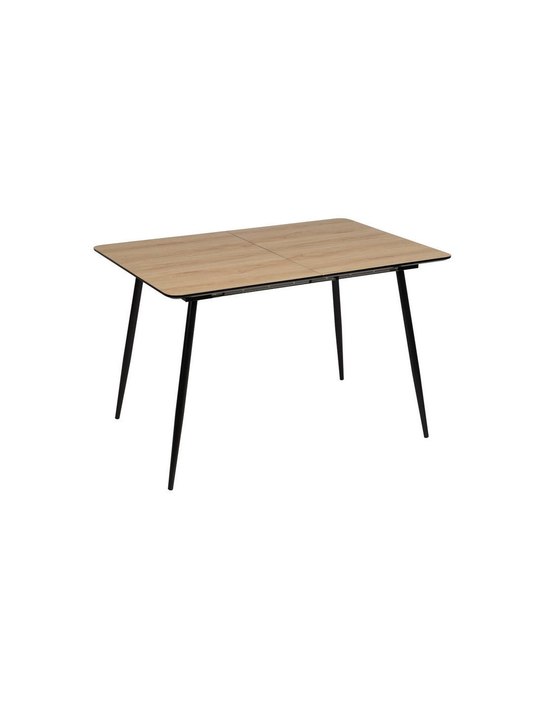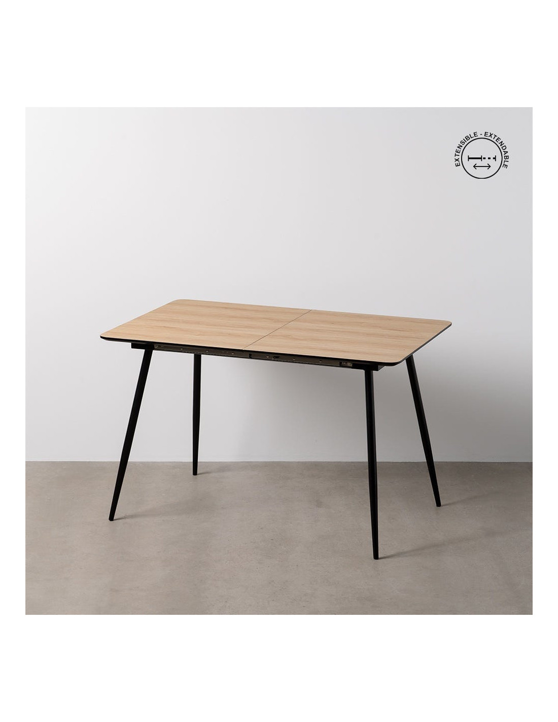 La table s’allonge de 120 à 160 cm grâce à un système central intégré. Elle permet d’accueillir plus de convives sans modifier l’équilibre de la pièce.