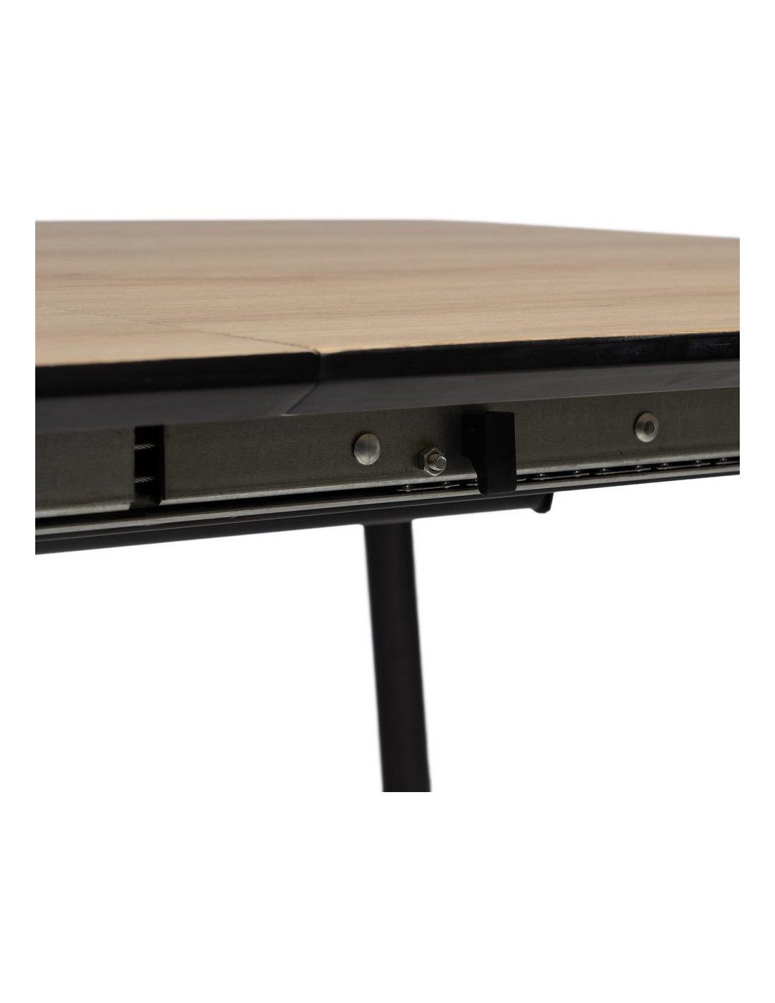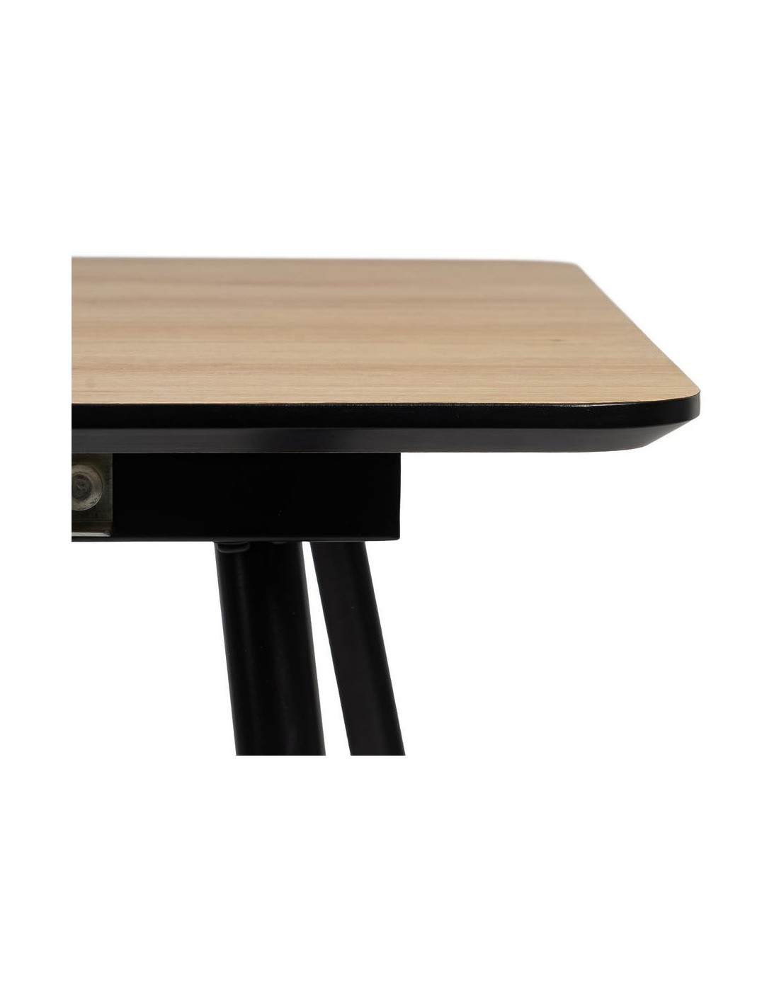 Le piètement en métal noir se distingue par sa finesse. Il contraste avec le plateau tout en laissant respirer l’espace autour de la table.
