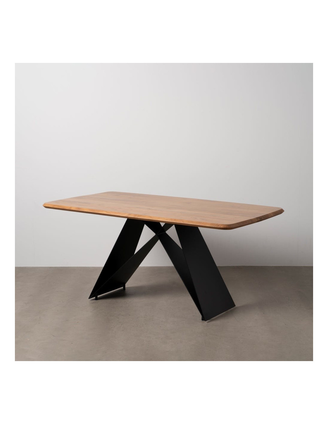 L’alliance du bois naturel et du métal noir crée une table polyvalente, capable de s’intégrer dans des univers modernes, industriels ou plus minimalistes.