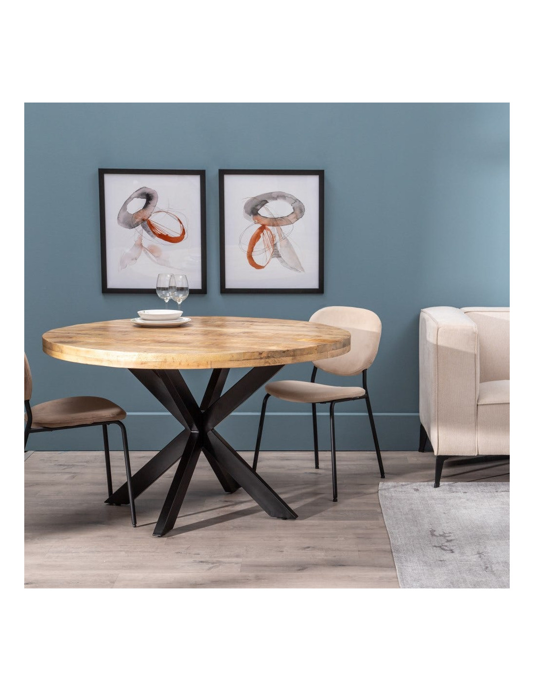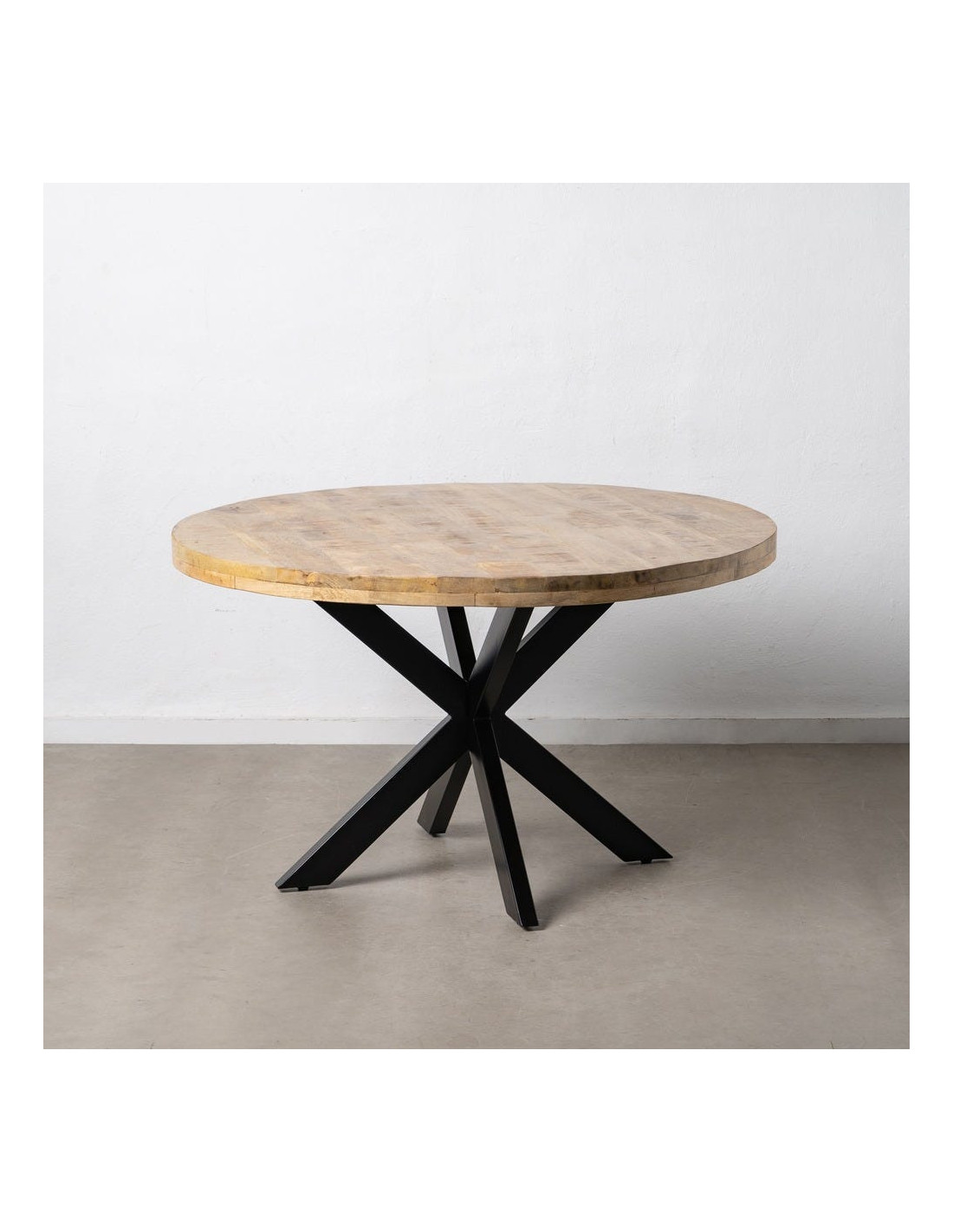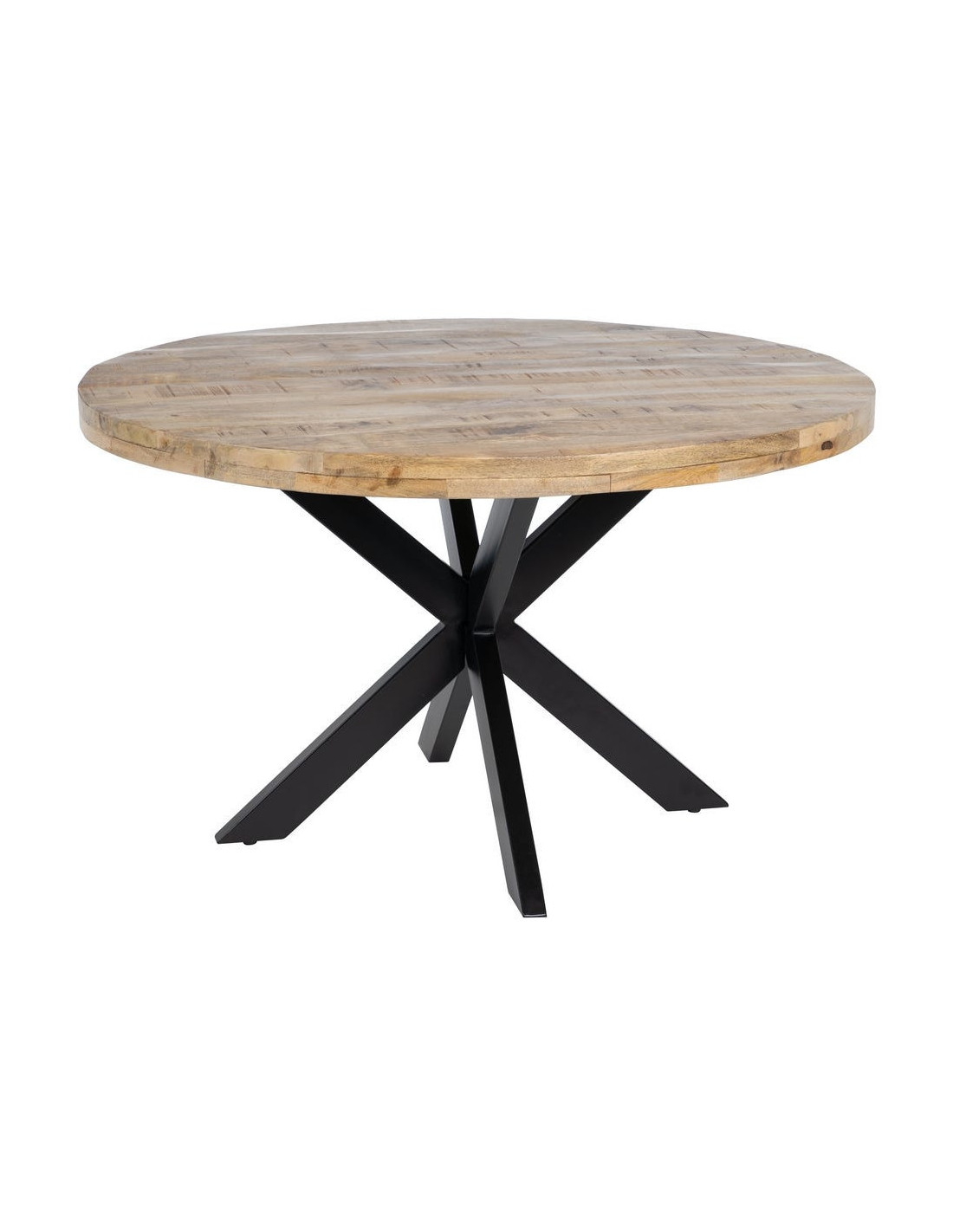 Table à manger moderne Ronde 6 personnes en Bois de manguier Naturel Métal Noir Lurda - 6