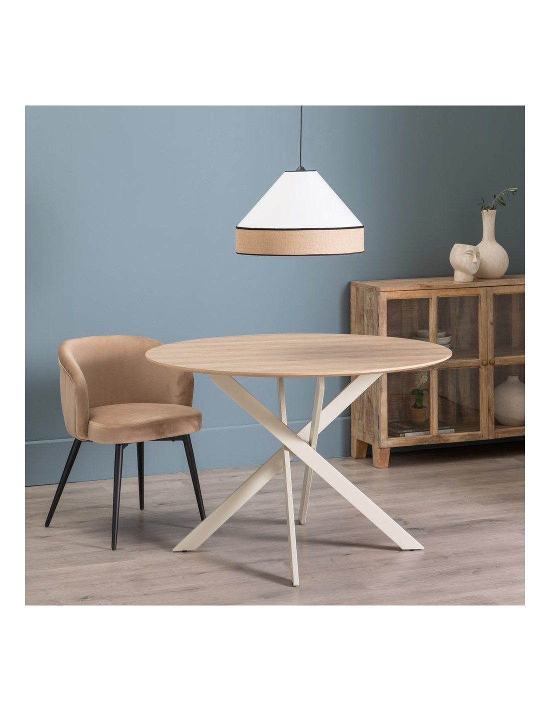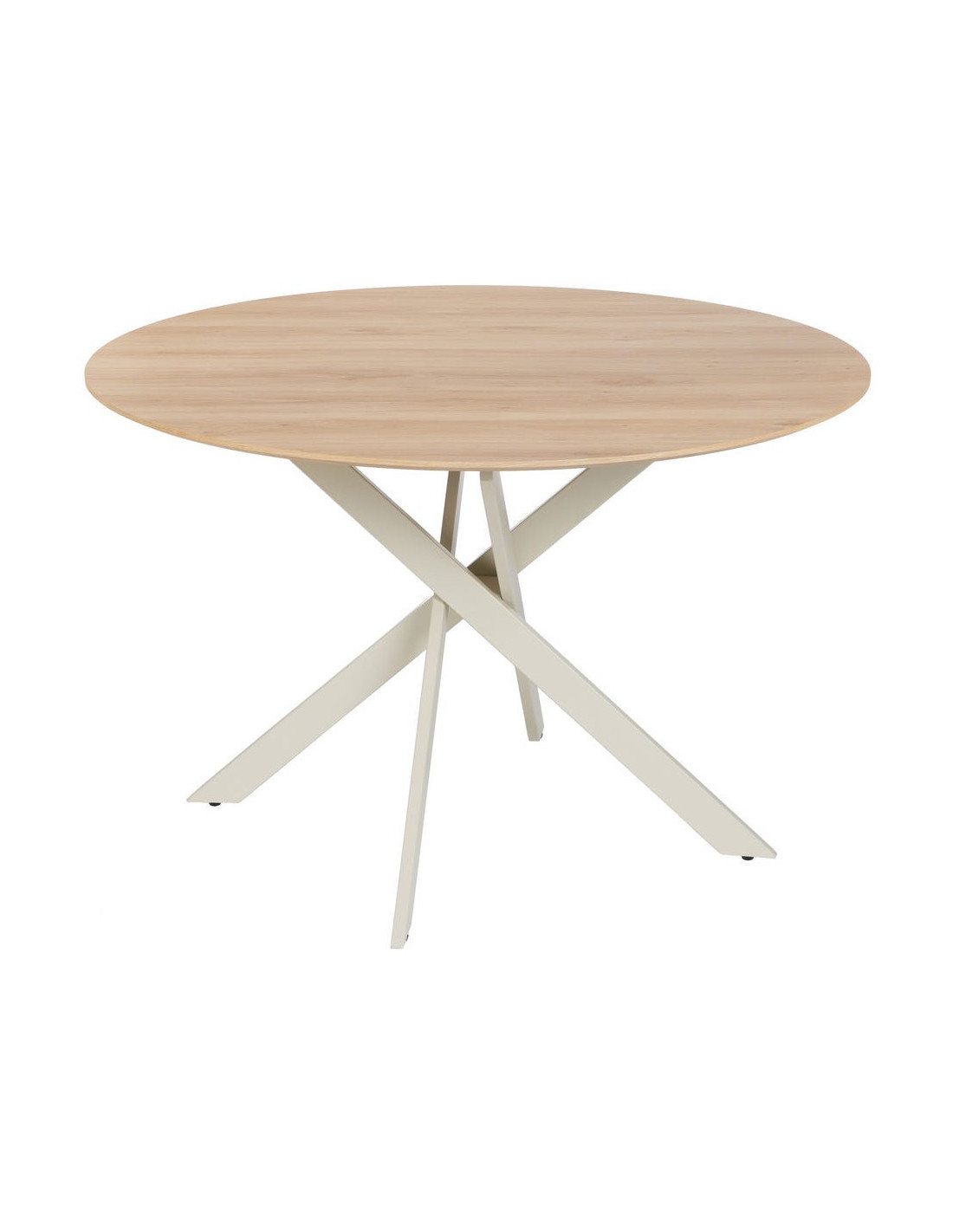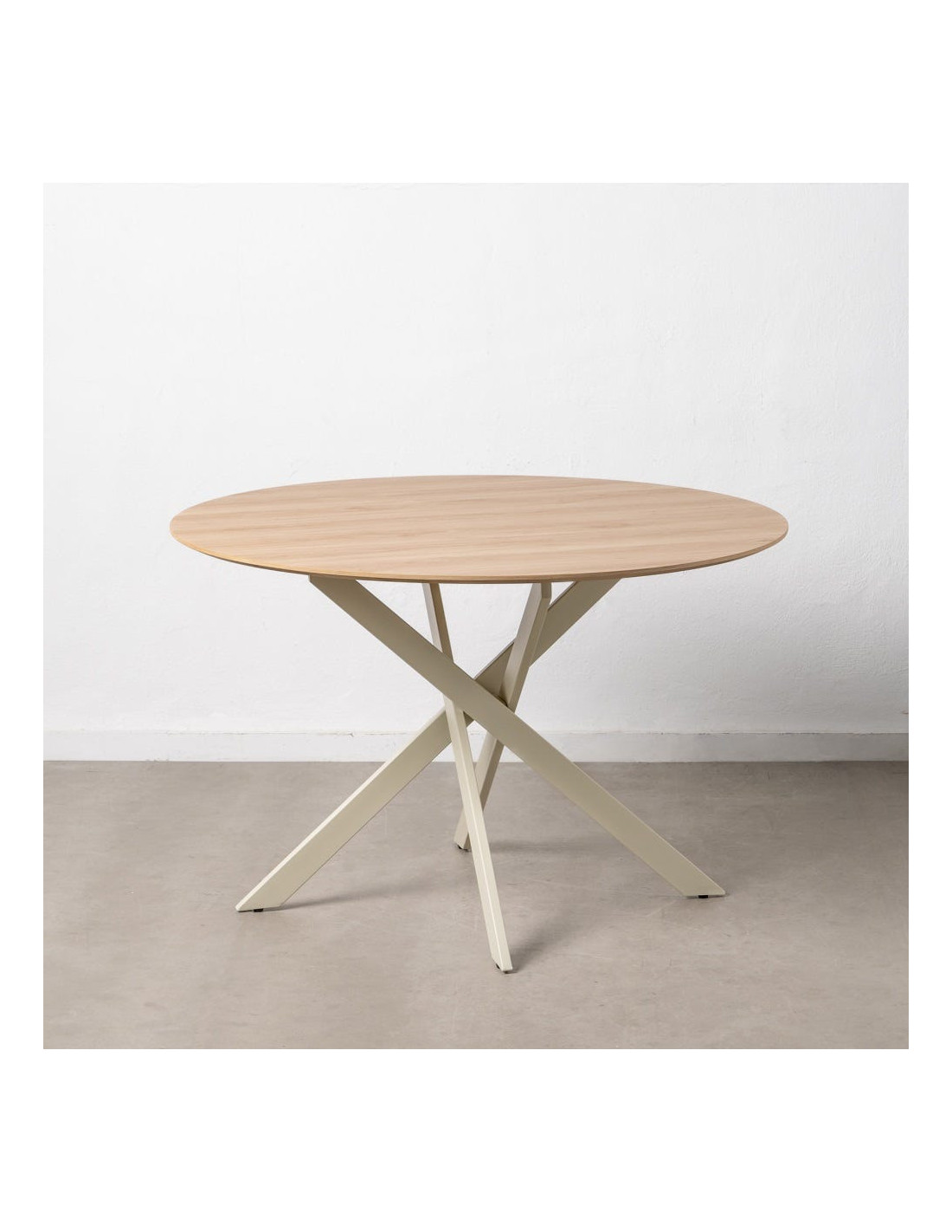Table à manger moderne Ronde 6 personnes en Bois MDF Naturel Métal Blanc crème Saida - 6
