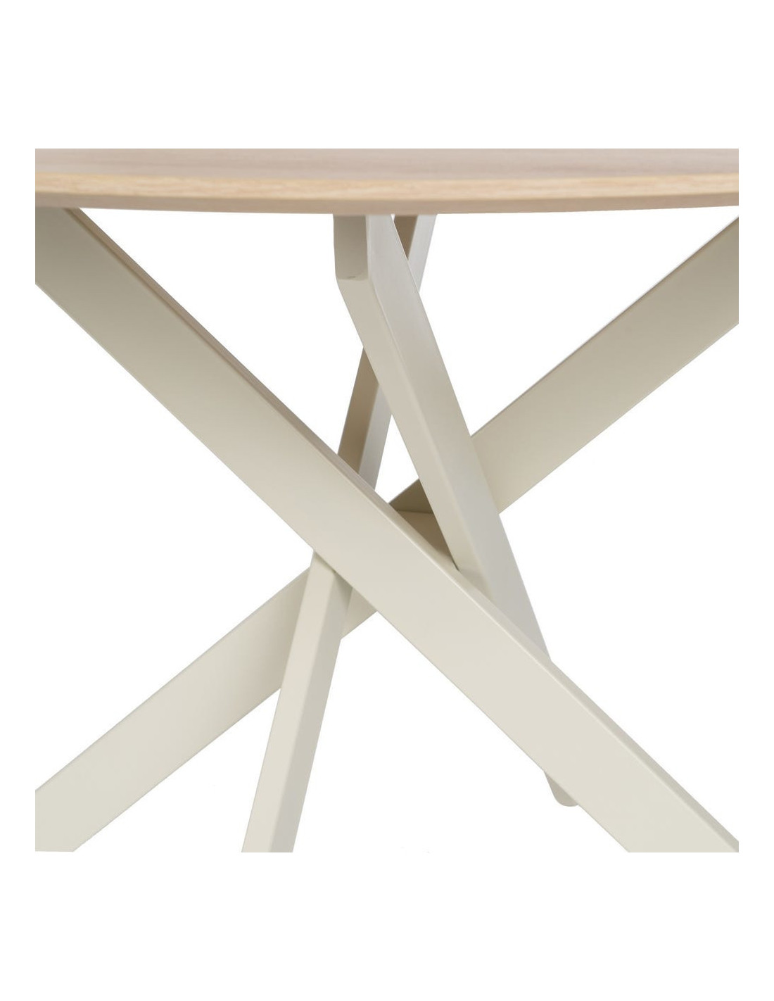 Table à manger moderne Ronde 6 personnes en Bois MDF Naturel Métal Blanc crème Saida - 4