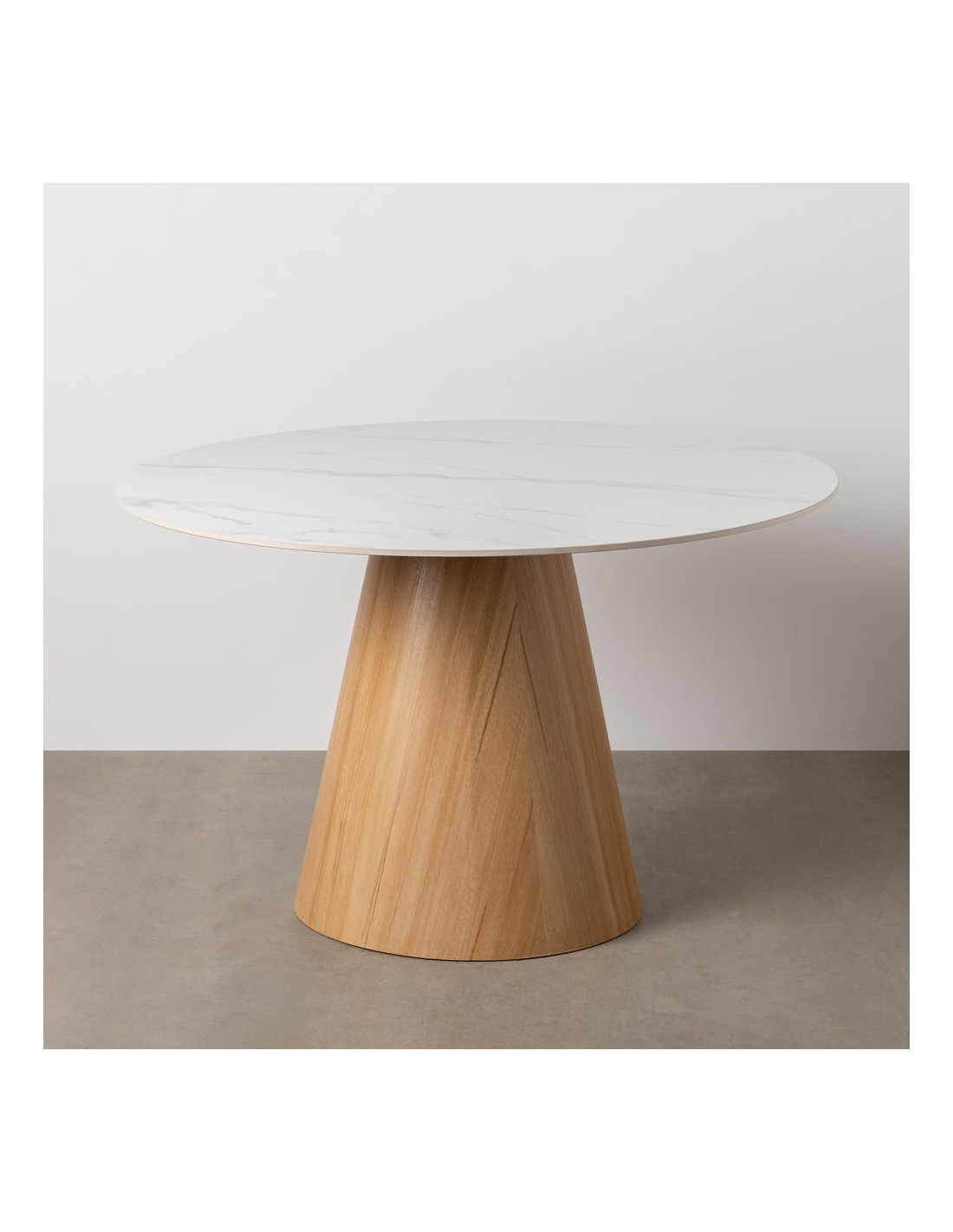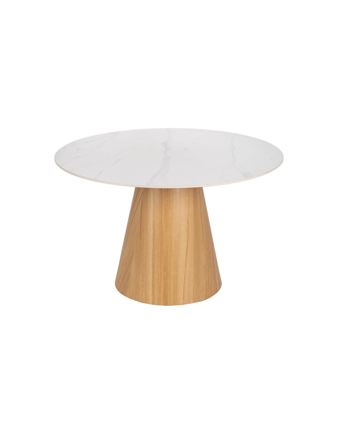 Table à manger moderne Ronde 6 personnes en Céramique Blanc Effet marbre Métal Naturel Effet bois Lurly - 6