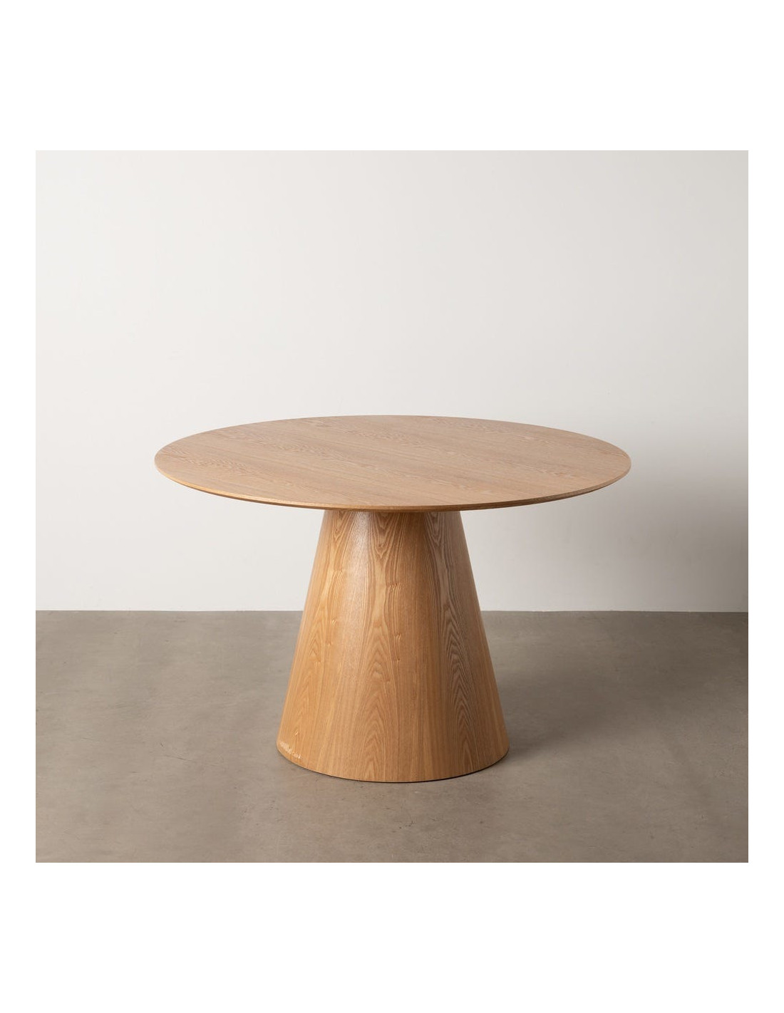 Table à manger moderne Ronde 6 personnes en MDF Naturel Mélaminé Edira