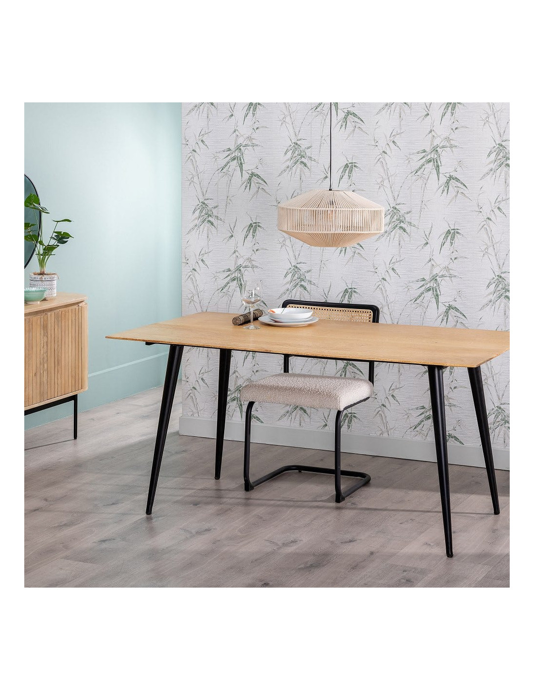 Table à manger Rectangulaire 6 personnes en Bois d'acacia Naturel Métal Noir Jeffrey - 6
