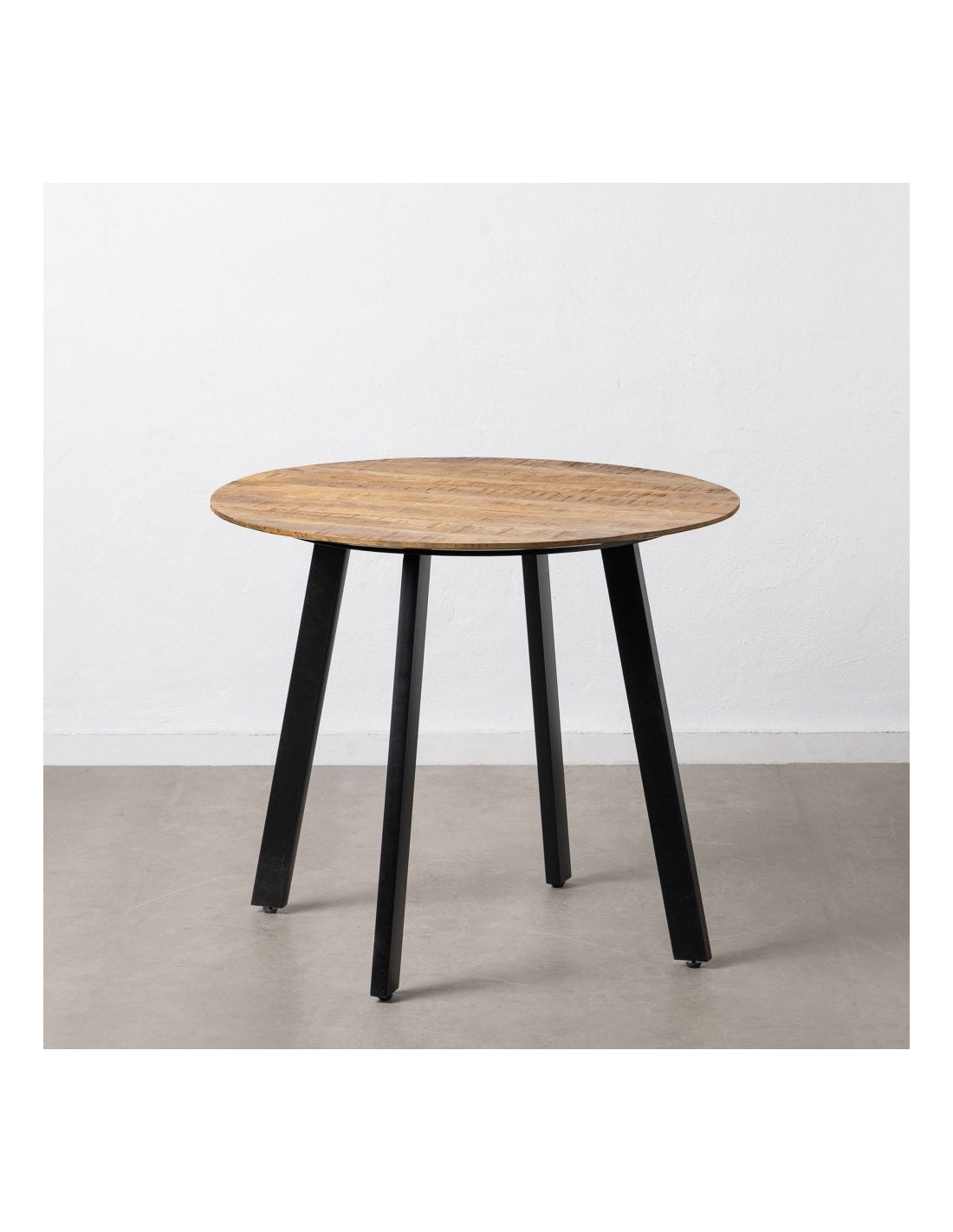 Table à manger Ronde 4 personnes en Bois d'acacia Naturel Métal Noir Jeffrey - 1