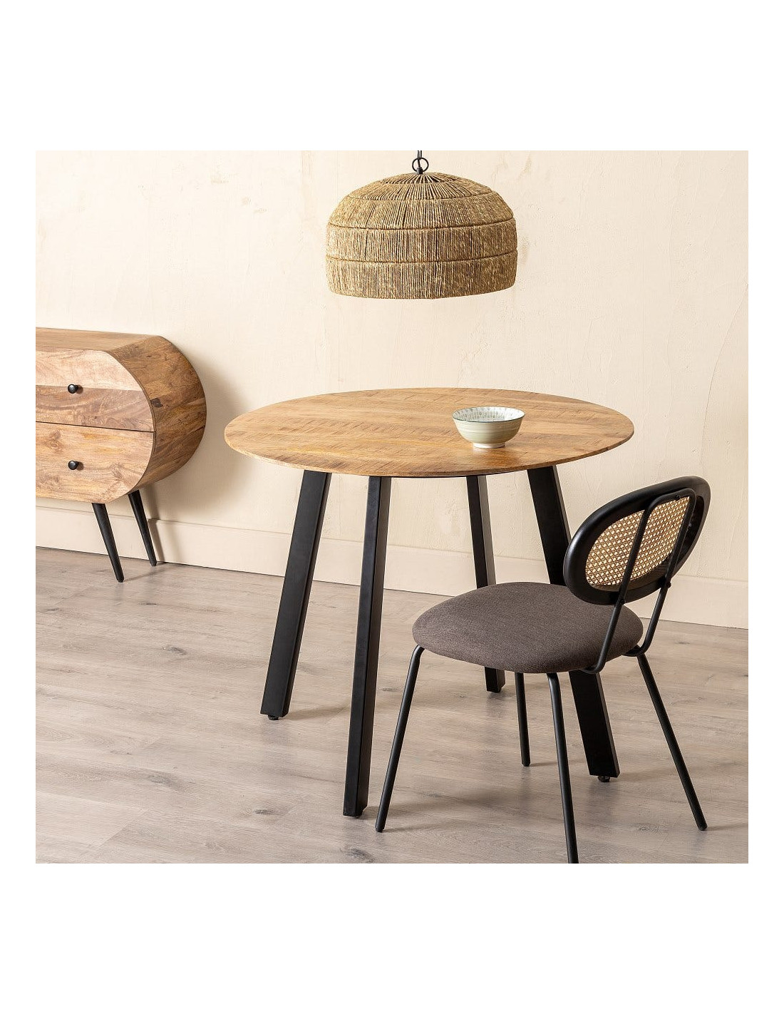 Table à manger Ronde 4 personnes en Bois d'acacia Naturel Métal Noir Jeffrey - 4