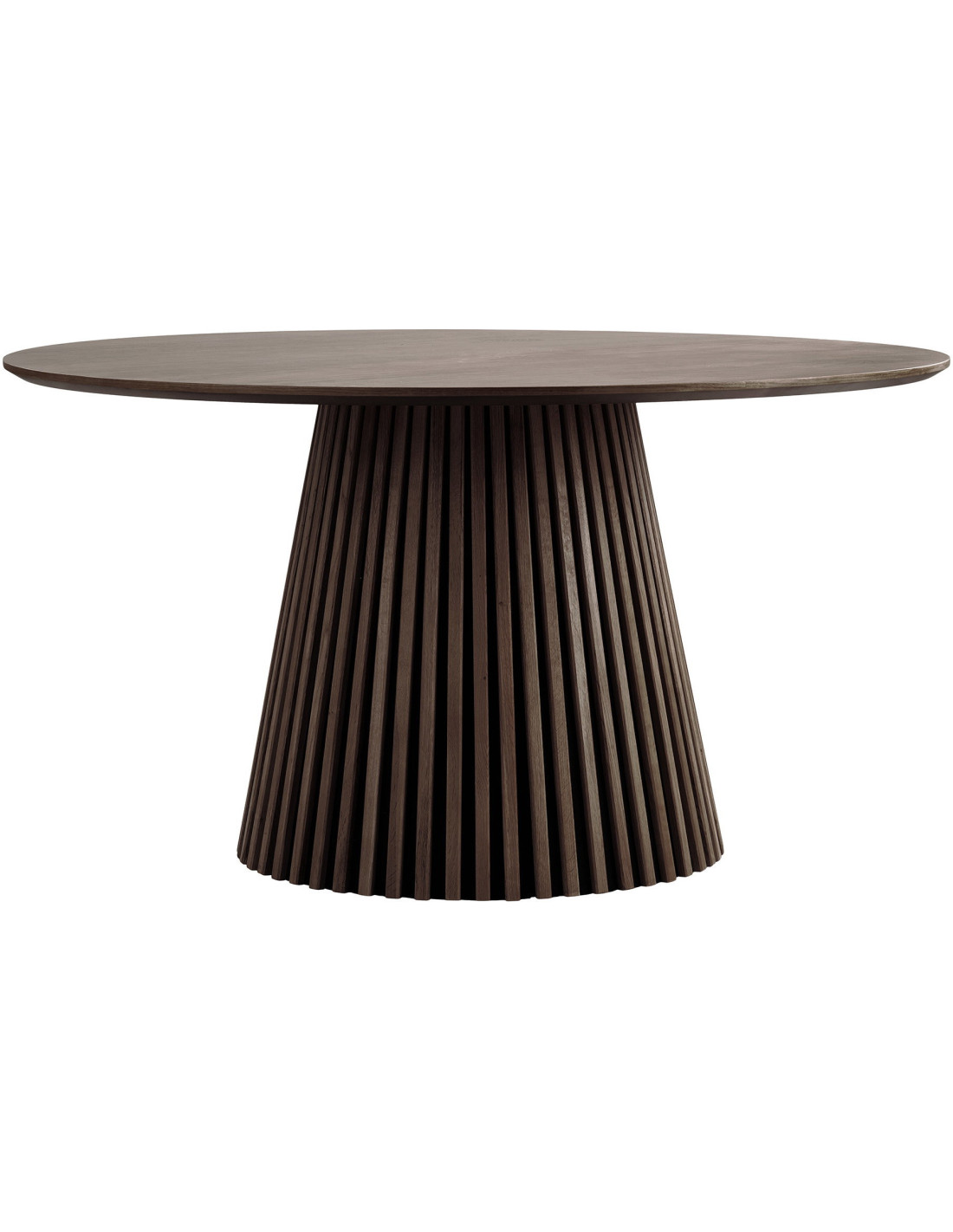 La base centrale composée de lames verticales crée un jeu de rythme visuel. Selon la lumière, les reliefs se révèlent différemment et donnent une vraie personnalité à la table.