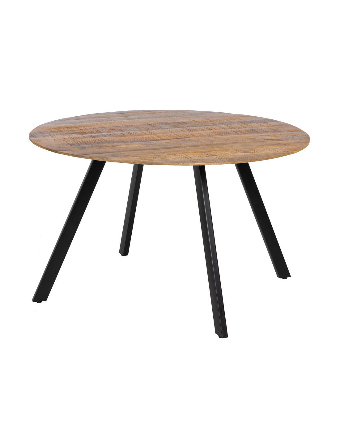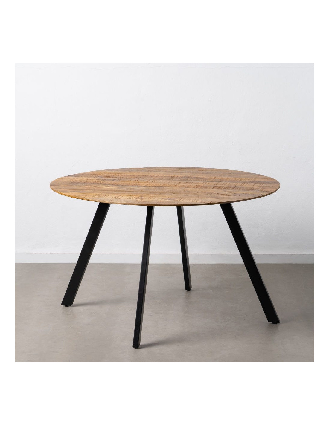 Table à manger Ronde 6 personnes en Bois d'acacia Naturel Métal Noir Jeffrey - 6